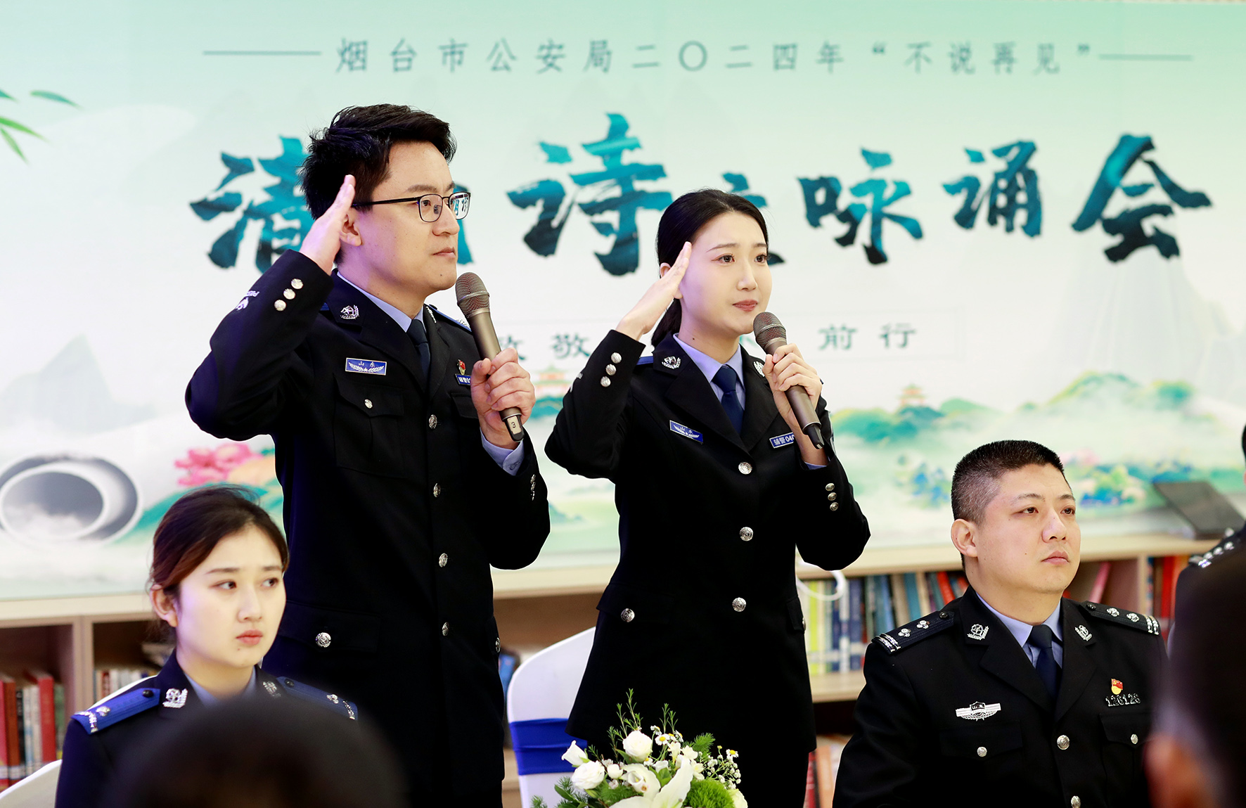 為緬懷英烈功績,凝聚奮進力量,4月3日,山東省煙臺市公安局舉辦清明詩歌詠誦會,15名民警輔警現(xiàn)場深情詠誦了9首原創(chuàng)作品,追憶煙臺公安英烈的英勇事跡和感人的故事。