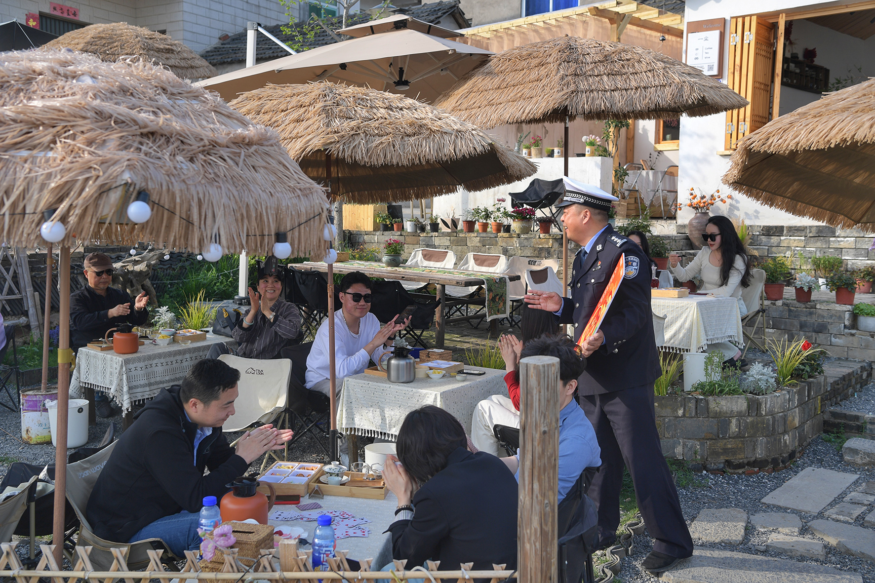 4月9日,安徽省巢湖市公安局交警大隊(duì)民警走進(jìn)中廟鎮(zhèn)王咀村網(wǎng)紅打卡地,為游客講解道路交通安全知識(shí)。