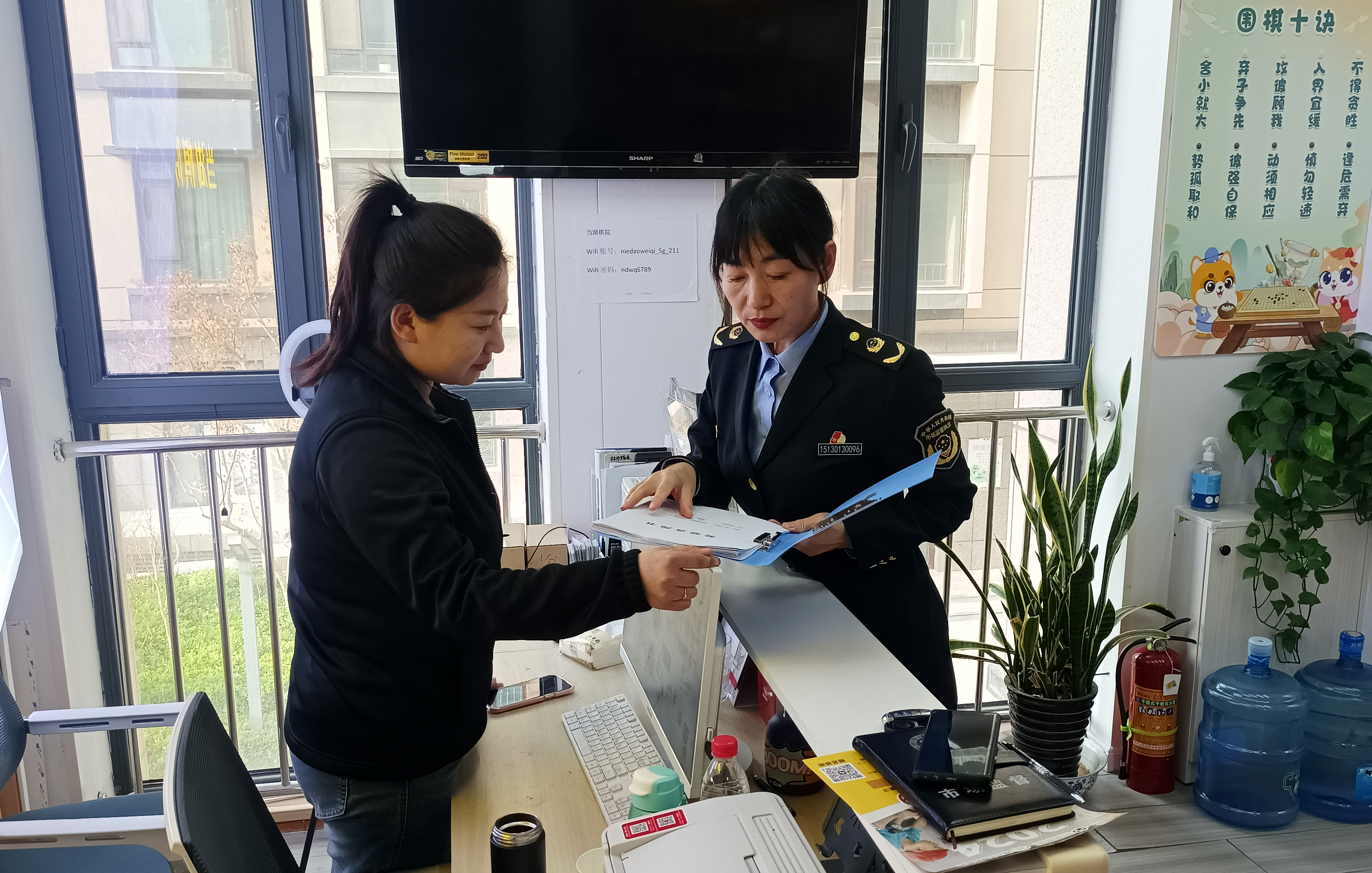 圖為執(zhí)法人員走進商戶檢查格式合同內容及使用情況。
