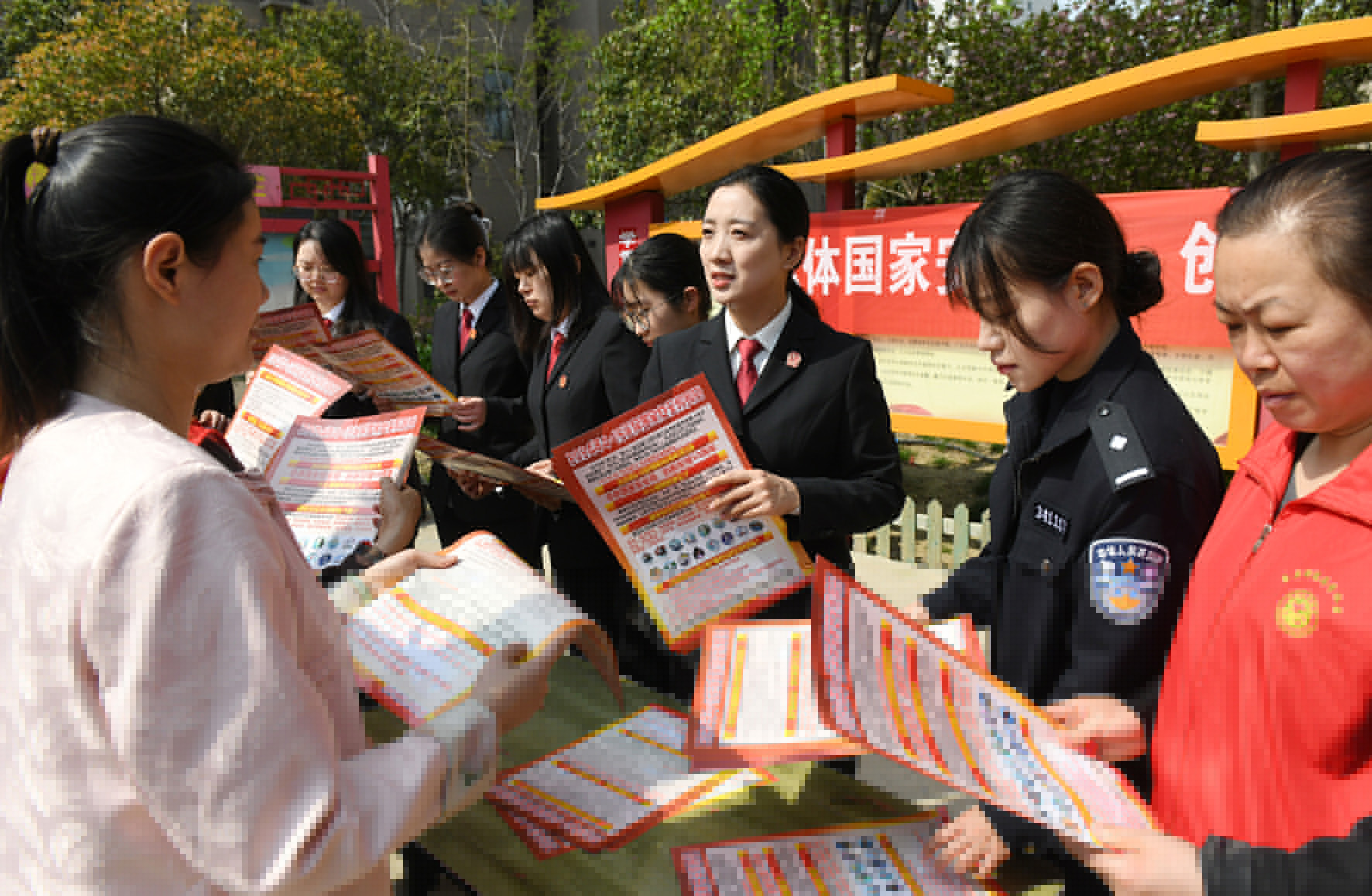 圖為4月11日,民警輔警會(huì)同工業(yè)區(qū)平安辦工作人員、平安志愿者在轄區(qū)開(kāi)展國(guó)家安全知識(shí)宣傳。