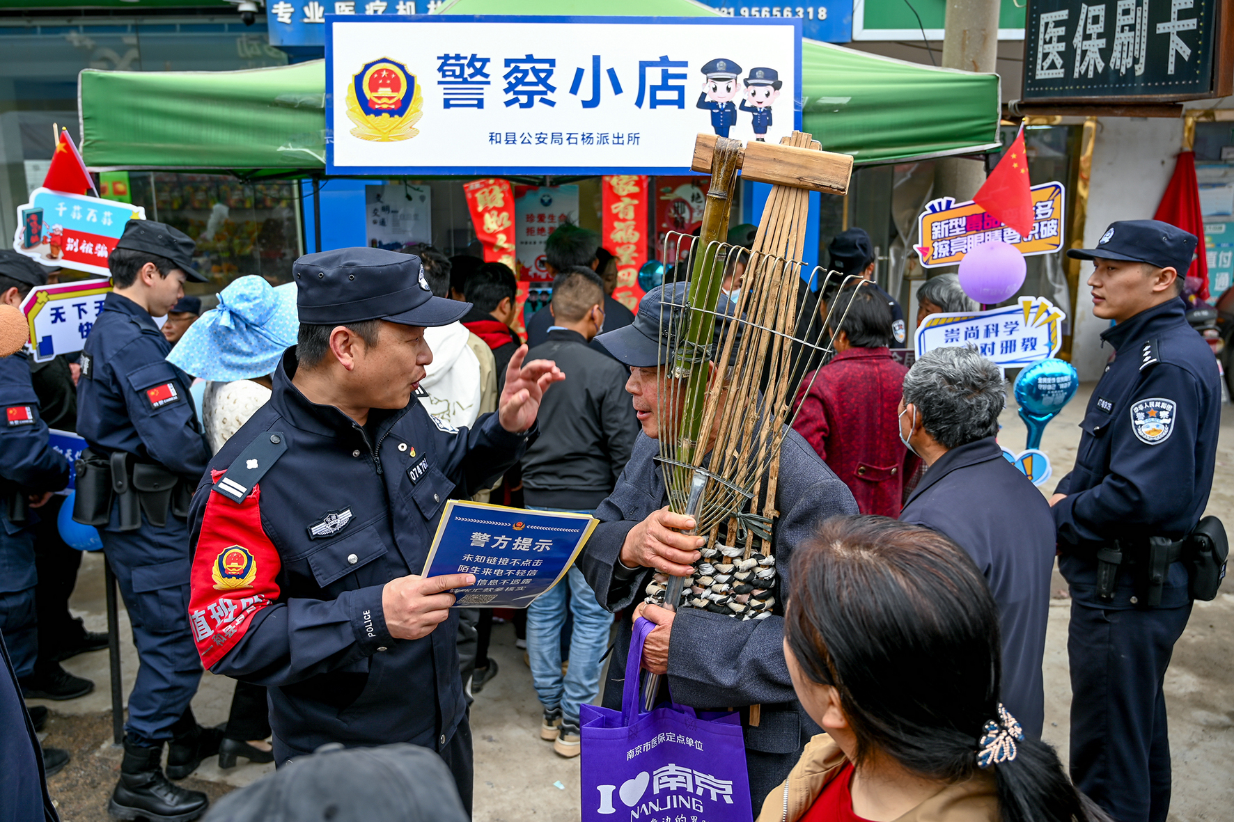 4月11日,農(nóng)歷三月初三,是安徽省馬鞍山市和縣石楊鎮(zhèn)綽廟社區(qū)一年一度群眾“趕廟會(huì)”的日子。和縣公安局在全力做好廟會(huì)安全服務(wù)保障的同時(shí),“警察小店”也“開(kāi)張營(yíng)業(yè)”,禁毒、反詐、反邪教以及國(guó)家安全等各種法治宣傳吸引了許多趕廟會(huì)的群眾。