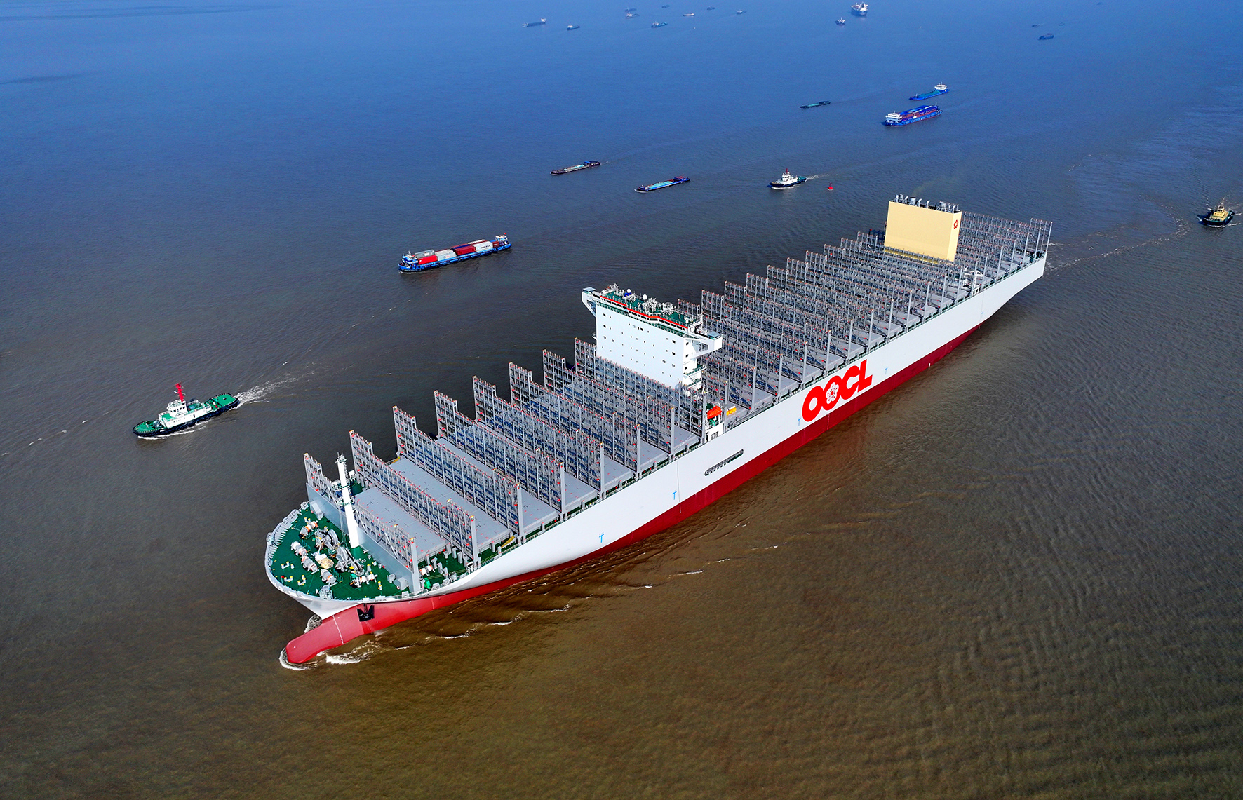 5月7日,在江蘇南通海事、邊檢等部門的保障下,全球重箱裝載量最大集裝箱船在南通中遠(yuǎn)海運(yùn)川崎碼頭出海試航。