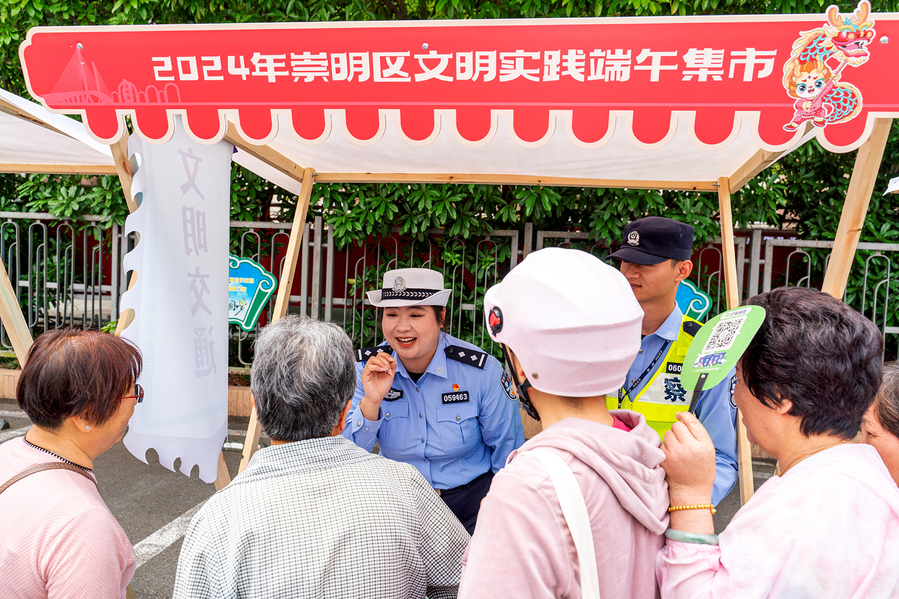 6月6日,上海市公安局崇明分局城橋派出所聯(lián)合交警支隊(duì)來到端午集市,向現(xiàn)場群眾開展交通安全宣傳。