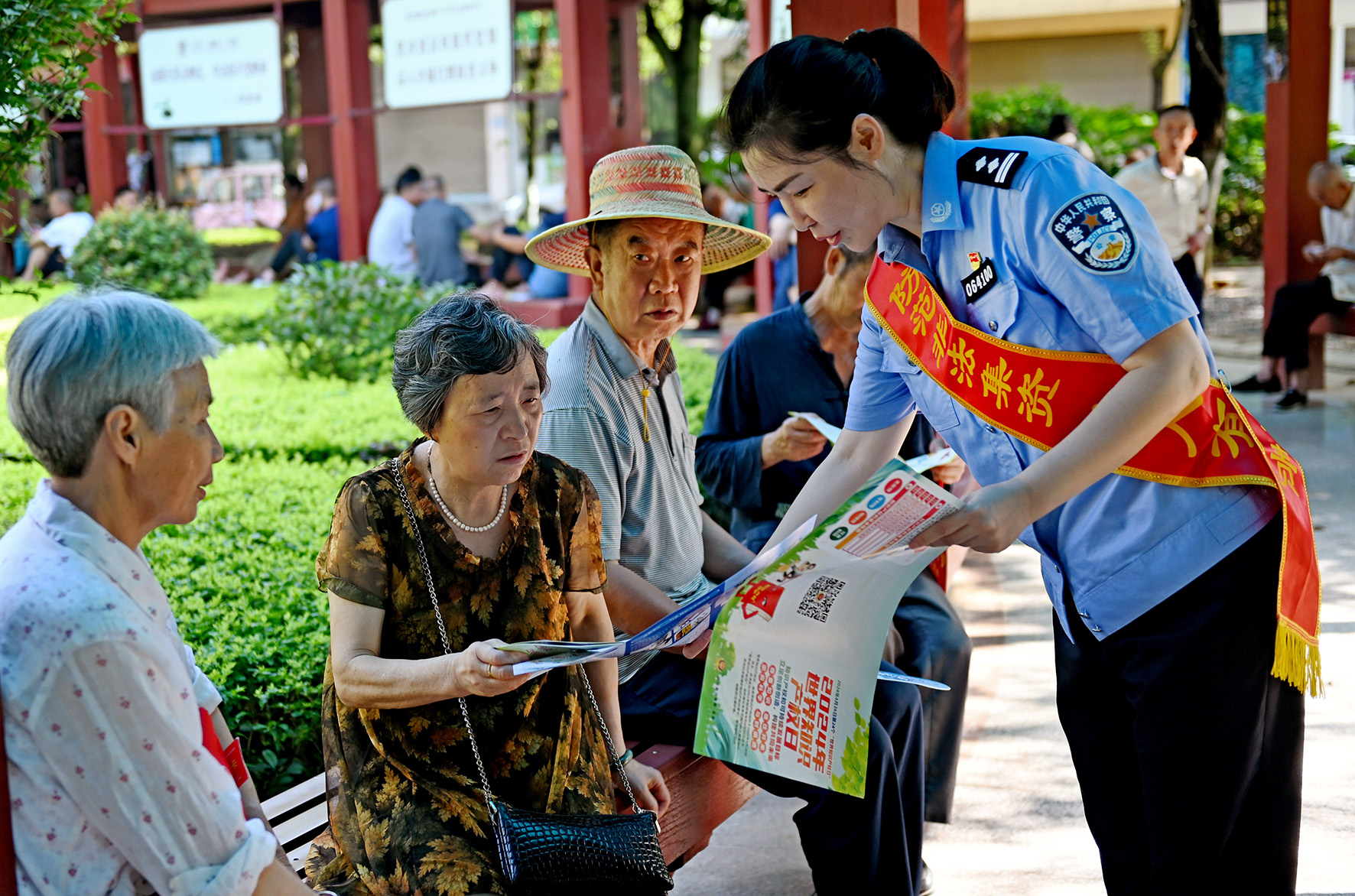 6月15日,湖南省邵陽(yáng)市洞口縣公安局民警在向群眾宣傳防范非法集資知識(shí)。