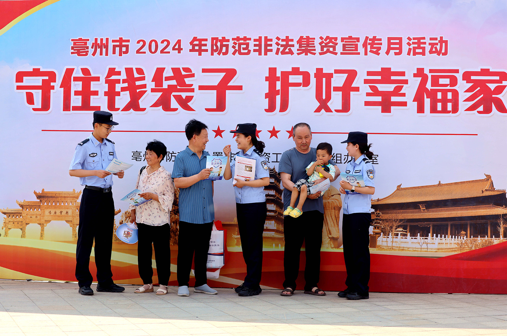 6月15日,安徽省亳州市公安局高新區(qū)分局在康美中藥城交易中心開展以“守住錢袋子 護(hù)好幸福家”為主題的防范非法集資集中宣傳活動(dòng)。