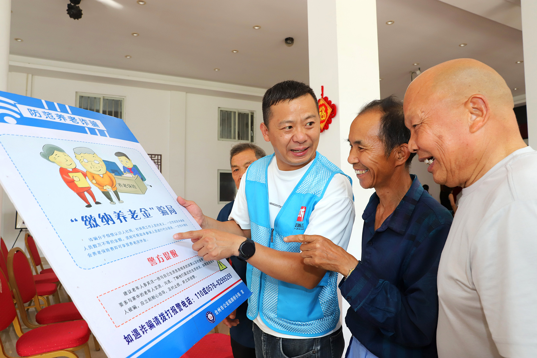 7月2日,浙江省臺(tái)州市路橋區(qū)路北街道的網(wǎng)格員在向老人曝光不法分子常見的詐騙伎倆。