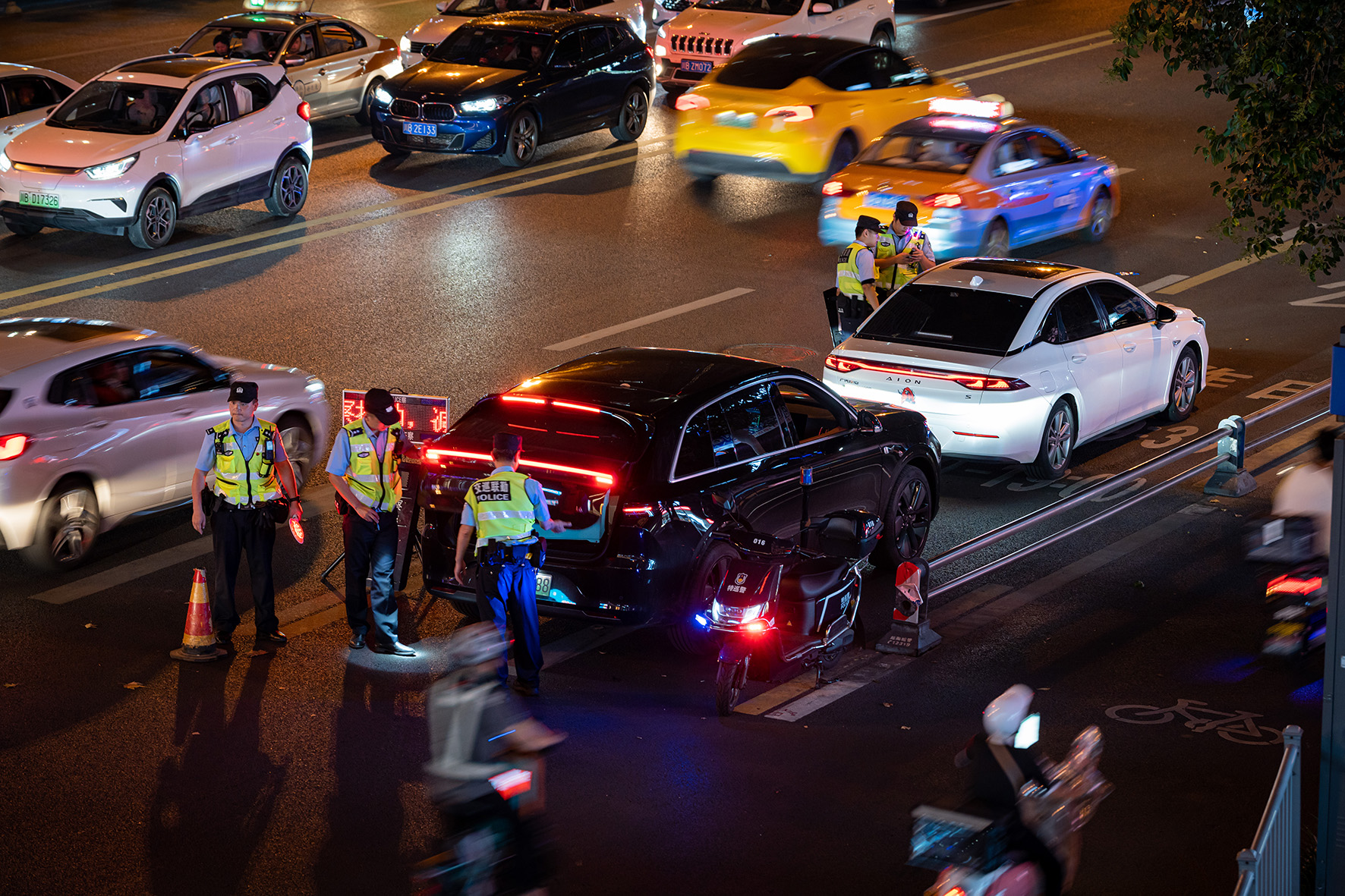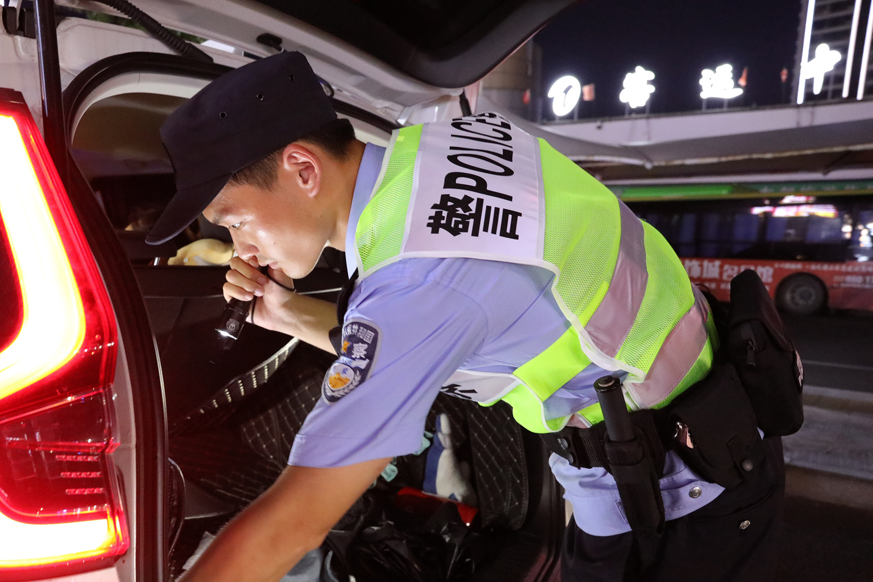7月6日晚,安徽省合肥市公安局交警支隊瑤海大隊民警在街面嚴查交通違法行為。
