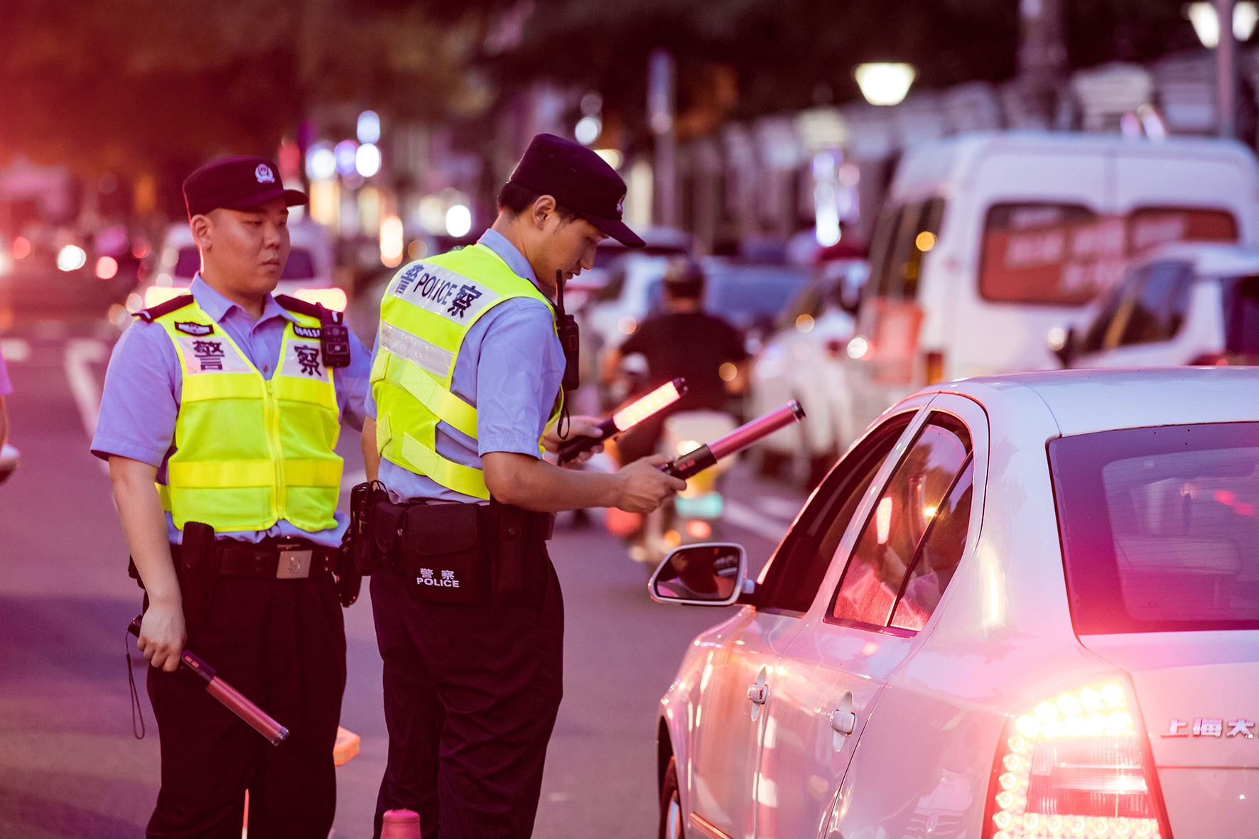 7月6日晚,山西省運城市新絳縣公安局交警大隊民輔警在全國公安機關(guān)夏夜治安巡查宣防集中統(tǒng)一行動中嚴查酒駕等嚴重交通違法行為。