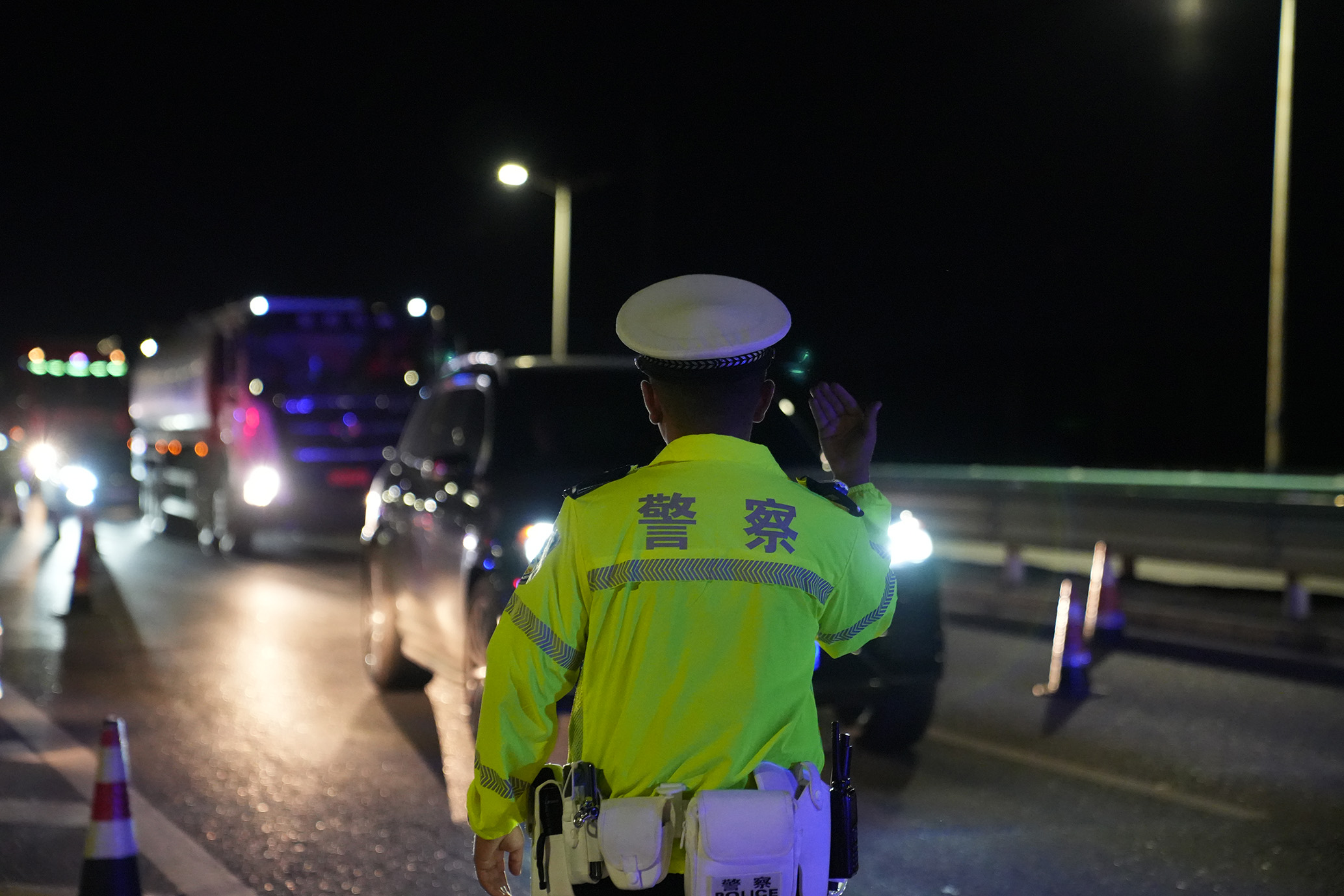 圖為民警盤查過往車輛。