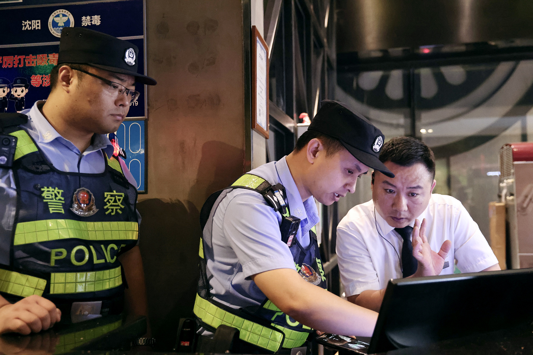 7月6日晚,遼寧省沈陽市公安局和平分局太原街派出所民警在酒店和娛樂場所進行檢查。