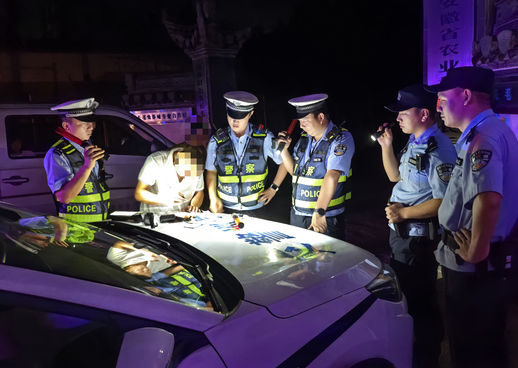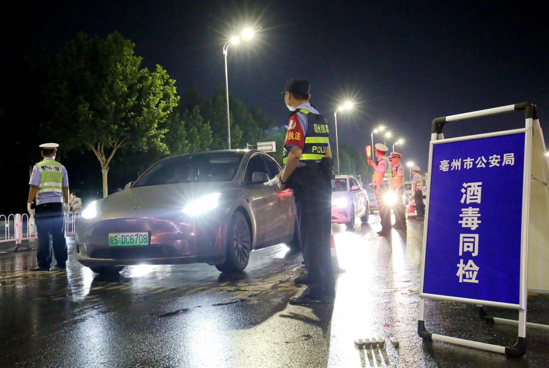 7月6日晚,安徽省亳州市公安局禁毒民警聯(lián)合交警部門開展“酒毒同檢”行動。