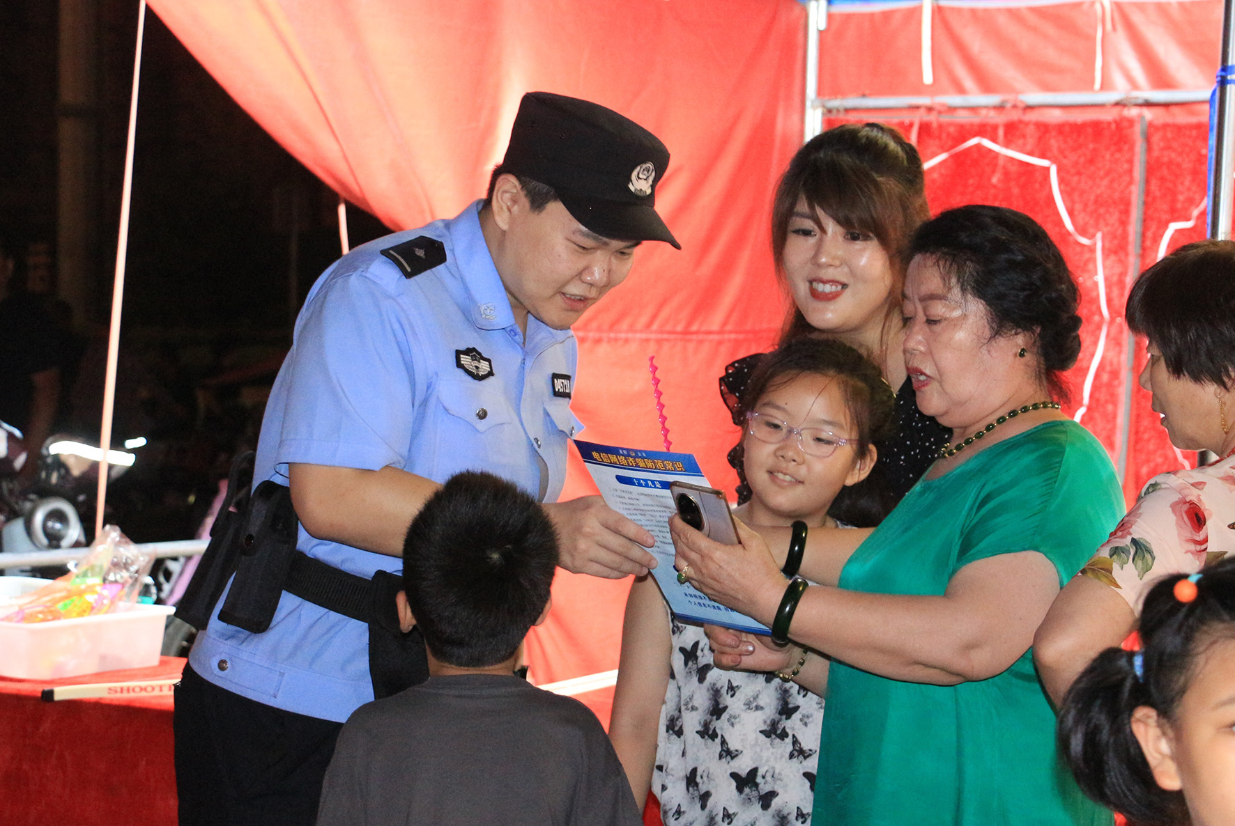 7月6日傍晚,安徽省舒城縣公安局組織刑偵、交警、派出所民警來到縣城區(qū)人員較為聚集的廣場,向群眾開展安全防范宣傳。