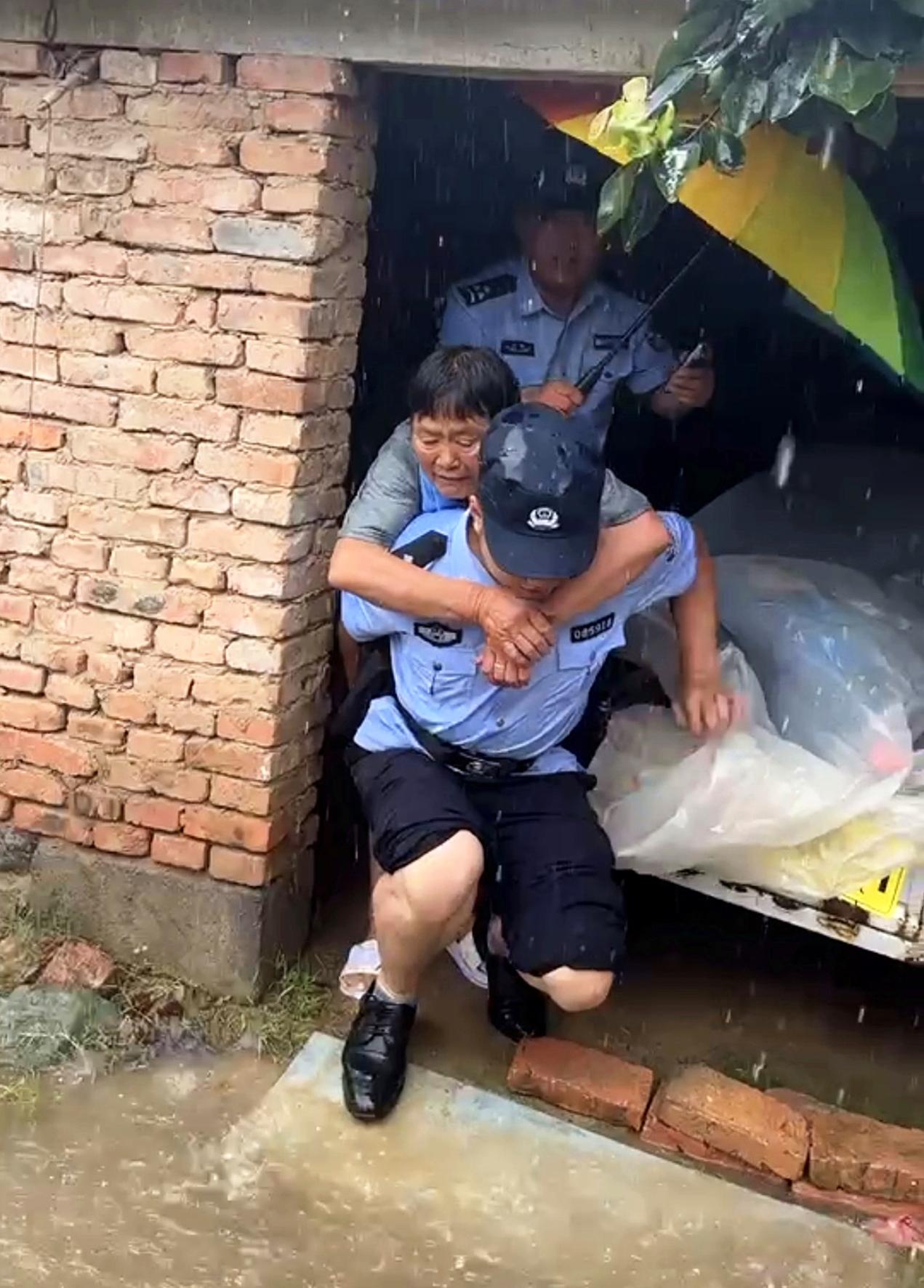 7月17日,安徽省亳州市公安局譙城分局顏集派出所民警迎著暴雨,將被困在家中的老人營(yíng)救到安全區(qū)域,并妥善安置。