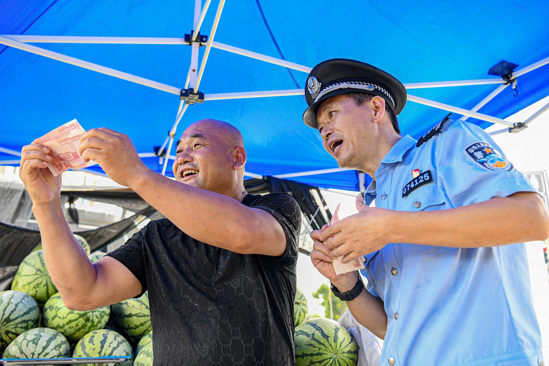 7月24日,安徽省馬鞍山市含山縣公安局環(huán)峰派出所聯(lián)合經(jīng)偵大隊(duì)組織民警開展反假幣宣傳活動。