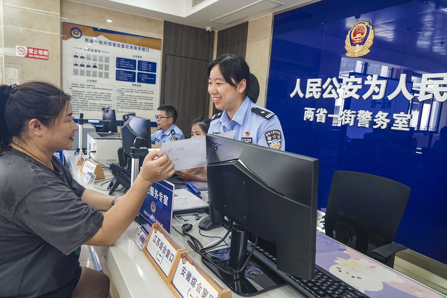 圖一:7月25日,皖蘇“兩省一街”警務室民警服務兩地群眾,真正實現(xiàn)“進一扇門,辦兩省事”。