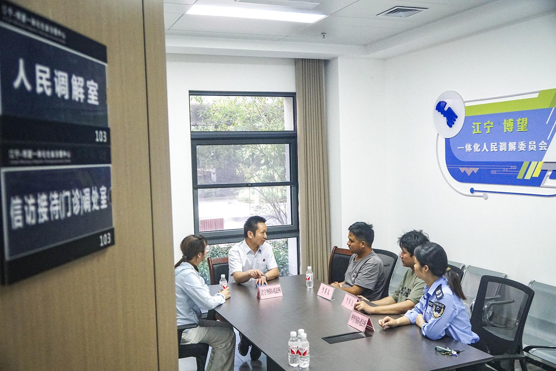 圖二:8月6日,江寧—博望跨界一體化聯(lián)合人民調(diào)解委員會專職調(diào)解員共同解決兩地群眾反映的訴求和矛盾糾紛。