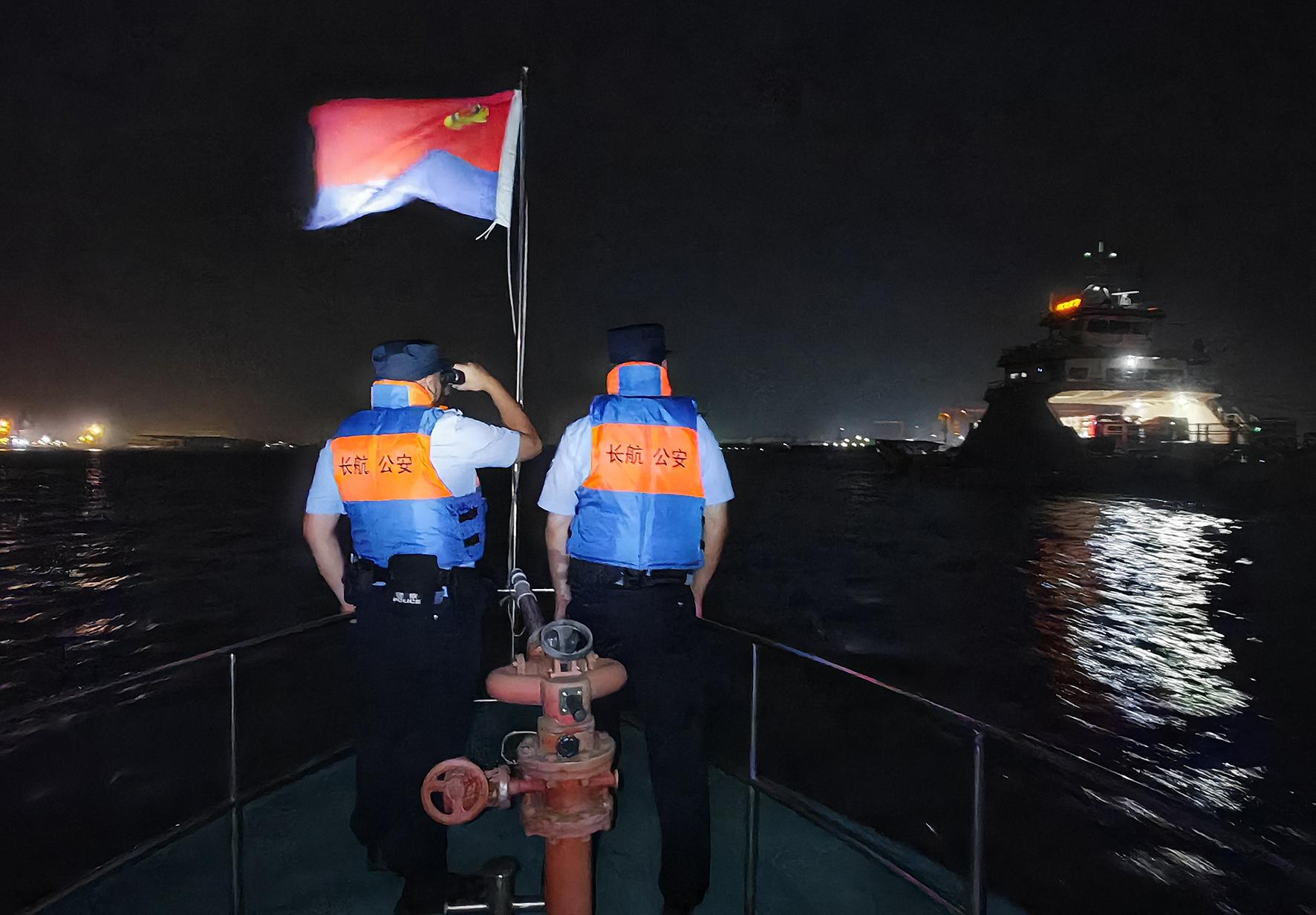 8月10日晚,在夏夜巡查宣防第二次集中統(tǒng)一行動(dòng)期間,長(zhǎng)江航運(yùn)公安局鎮(zhèn)江分局聯(lián)合海關(guān)緝私分局組織警力在轄區(qū)水域、碼頭前沿作業(yè)區(qū)開展護(hù)航巡邏,全力護(hù)航夜間水運(yùn)物流人、船安全,以服務(wù)促管理,全力筑牢水上安全防線。