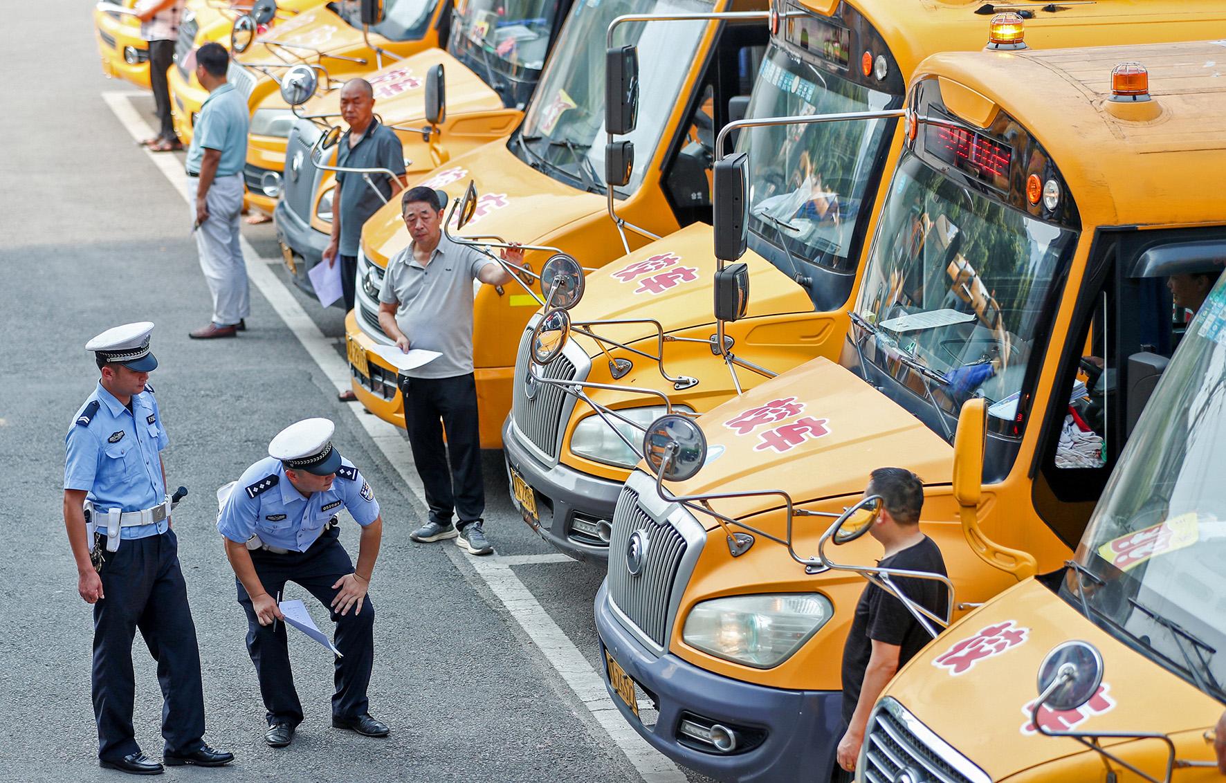 8月28日,四川省華鎣市公安局交通警察大隊(duì)組織民警對(duì)轄區(qū)內(nèi)接送學(xué)生的近50輛校車,集中開(kāi)展安全性能和隨車配備的安全應(yīng)急器材設(shè)備等檢查,及時(shí)排除安全隱患,確保學(xué)生乘車平安。