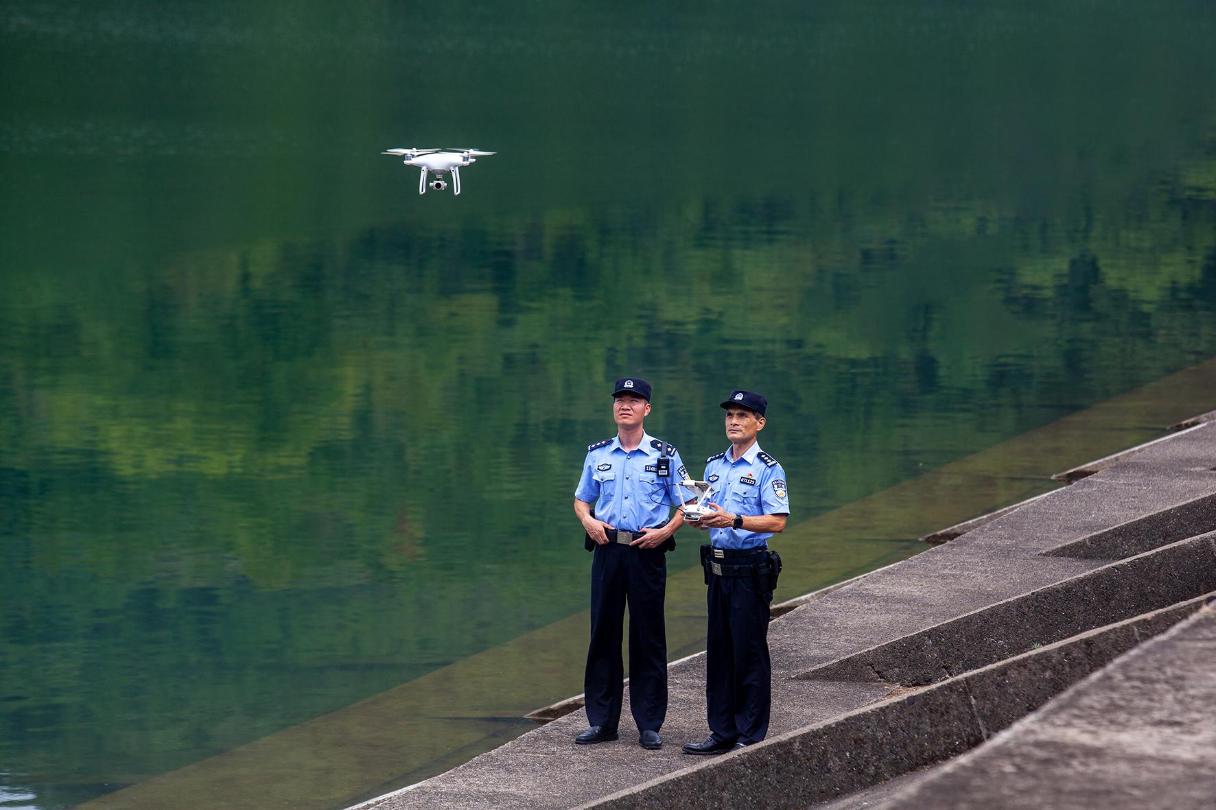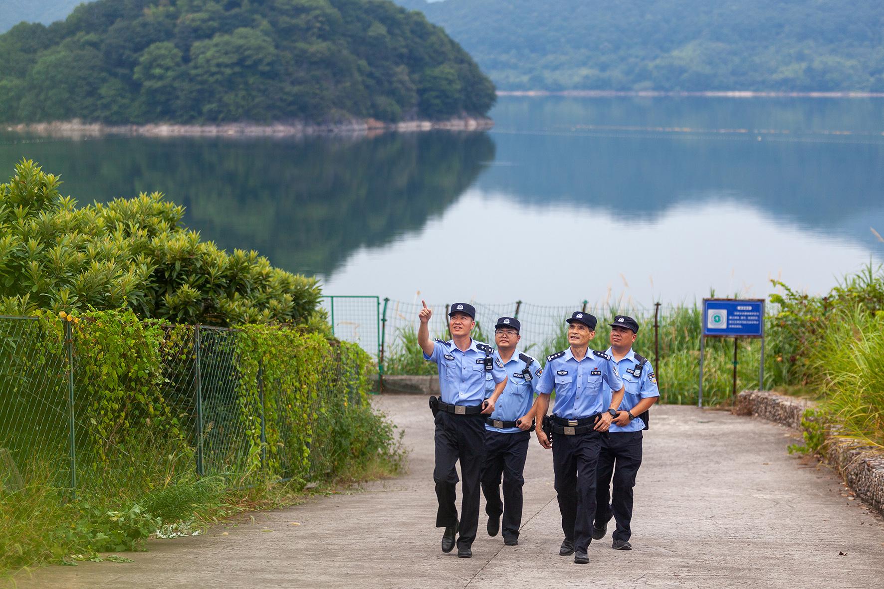 8月27日,浙江省臺州市公安局黃巖分局北洋派出所民警在長潭湖水庫巡查。黃巖警方實行“生態(tài)警務(wù)”,加強對庫區(qū)的巡防管控,整治各種危害水資源安全的行為,提升群眾保護飲用水水源地的意識,切實守護好綠水青山。