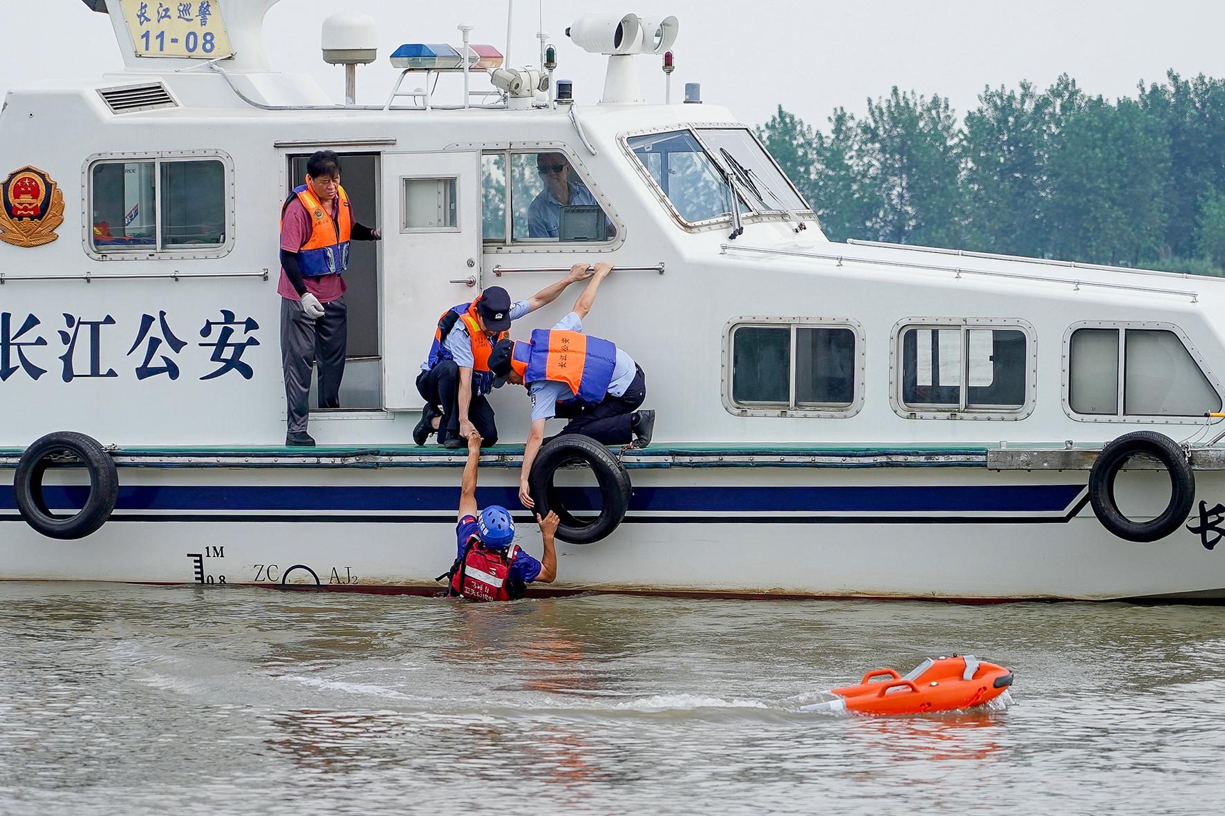 為加強新型警用裝備的實戰(zhàn)運用水平,8月27日,安徽省和縣公安局聯(lián)合長航公安在長江馬鞍山西梁山段開展溺水警情水上救援演練,通過無人機巡航查找溺水者位置,隨后拋投新裝備“救生飛翼”,通過精準定位系統(tǒng),準確高效將溺水者救回艇上。