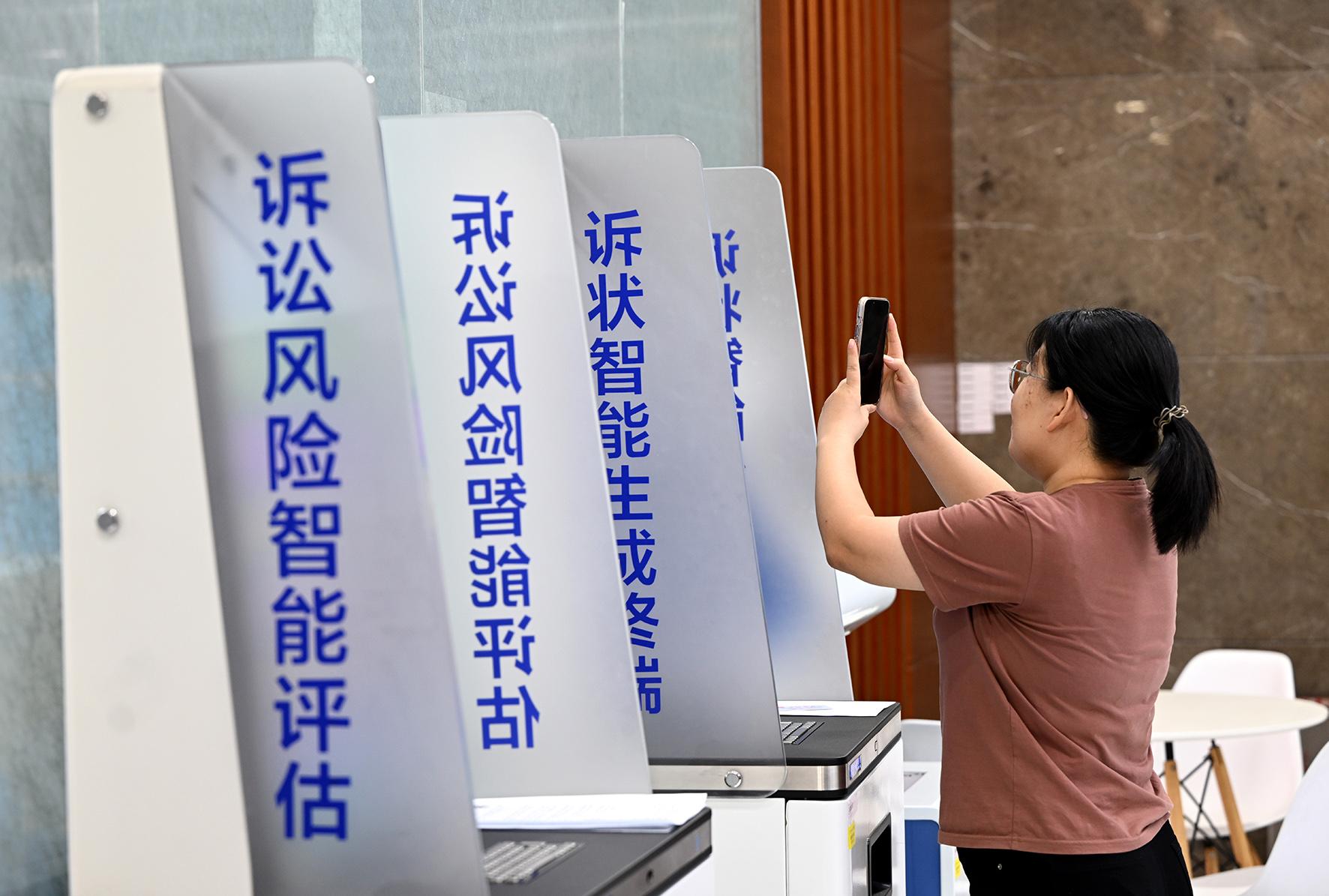 當(dāng)事人使用法院接待大廳的訴狀智能生成終端機(jī)器上制作起訴書(shū)。