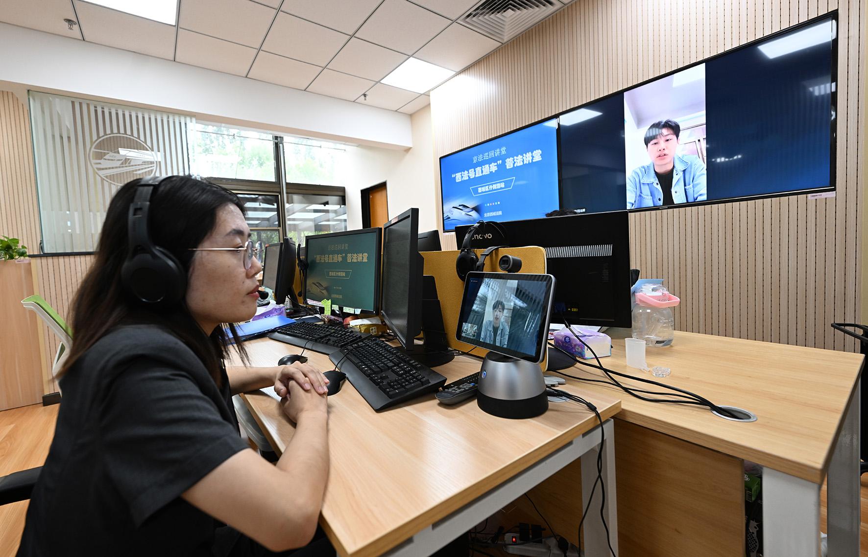 多元解紛訴調(diào)對(duì)接中心法官王運(yùn)佳正在網(wǎng)上審理一起涉北京某知識(shí)產(chǎn)權(quán)代理公司的商標(biāo)代理糾紛案件。