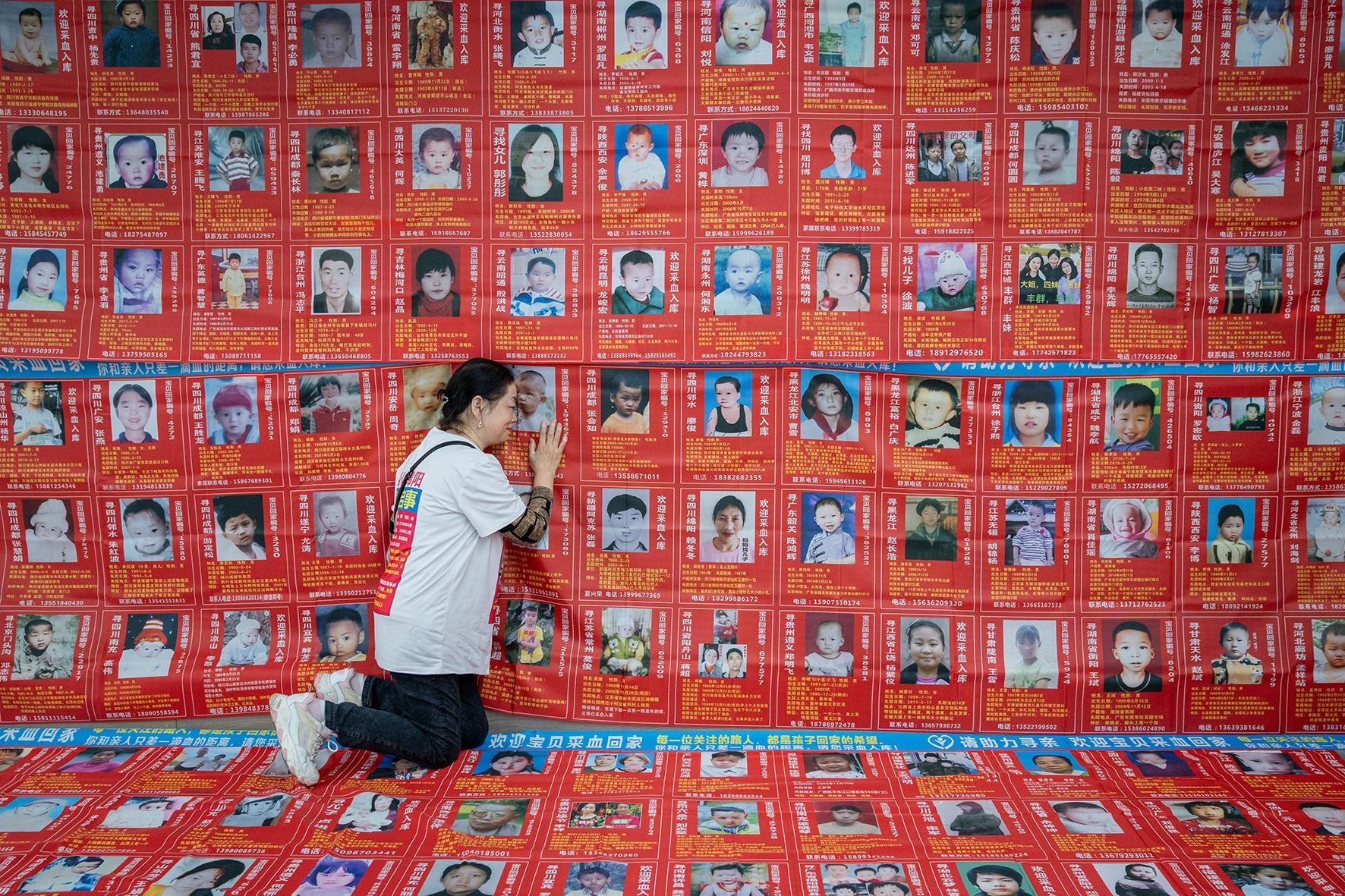 10月8日,四川省綿陽(yáng)市公安局舉行失蹤被拐兒童認(rèn)親活動(dòng),現(xiàn)場(chǎng)一位母親輕輕撫摸著尋親墻上兒子的照片。