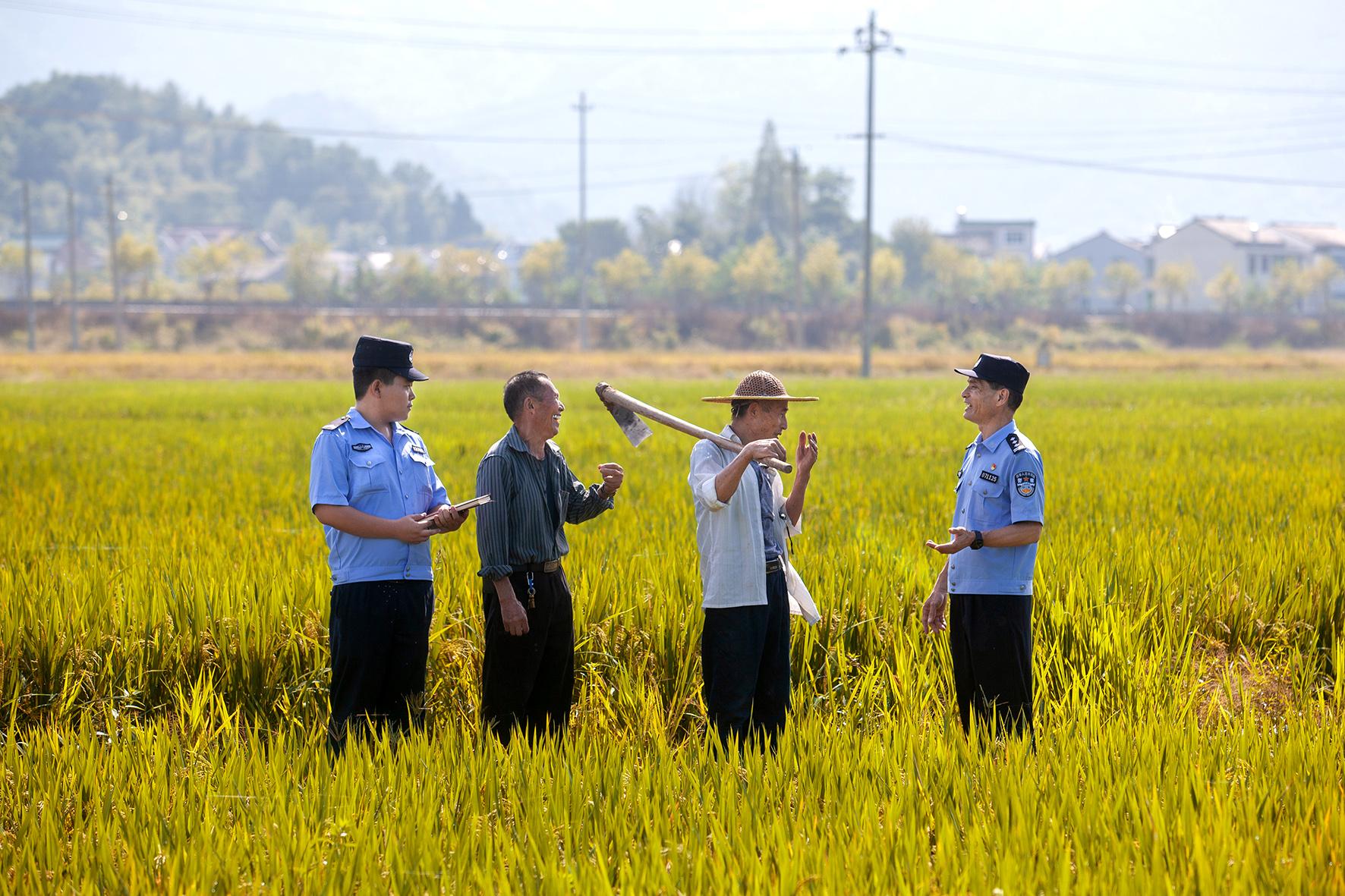 10月15日,浙江省臺州市公安局黃巖分局北洋派出所民警在田間地頭走訪群眾、調(diào)處糾紛,宣傳防范網(wǎng)絡(luò)電信詐騙知識。