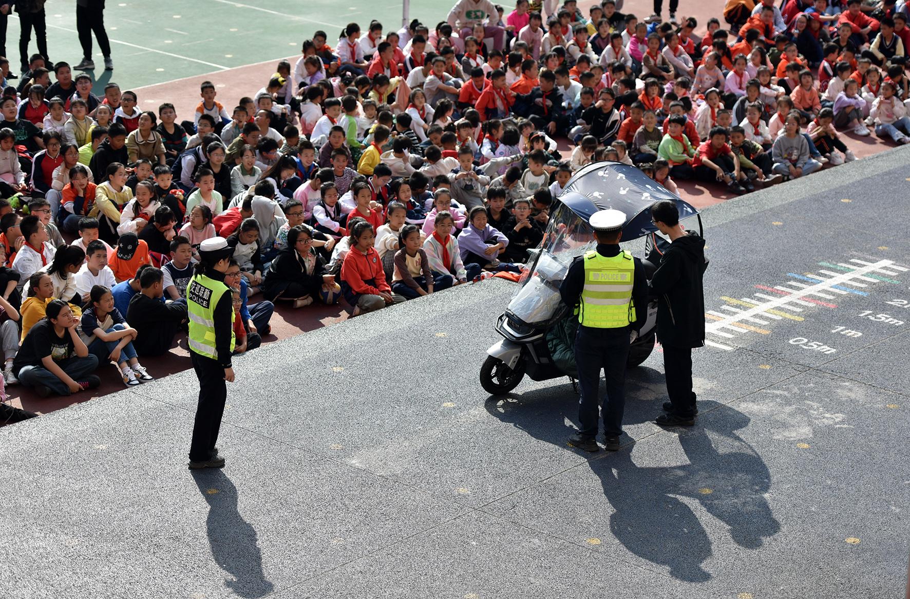 10月28日,四川省綿陽市公安局交警支隊(duì)直屬二大隊(duì)民警來到轄區(qū)小學(xué)開展交通安全宣講活動(dòng)。