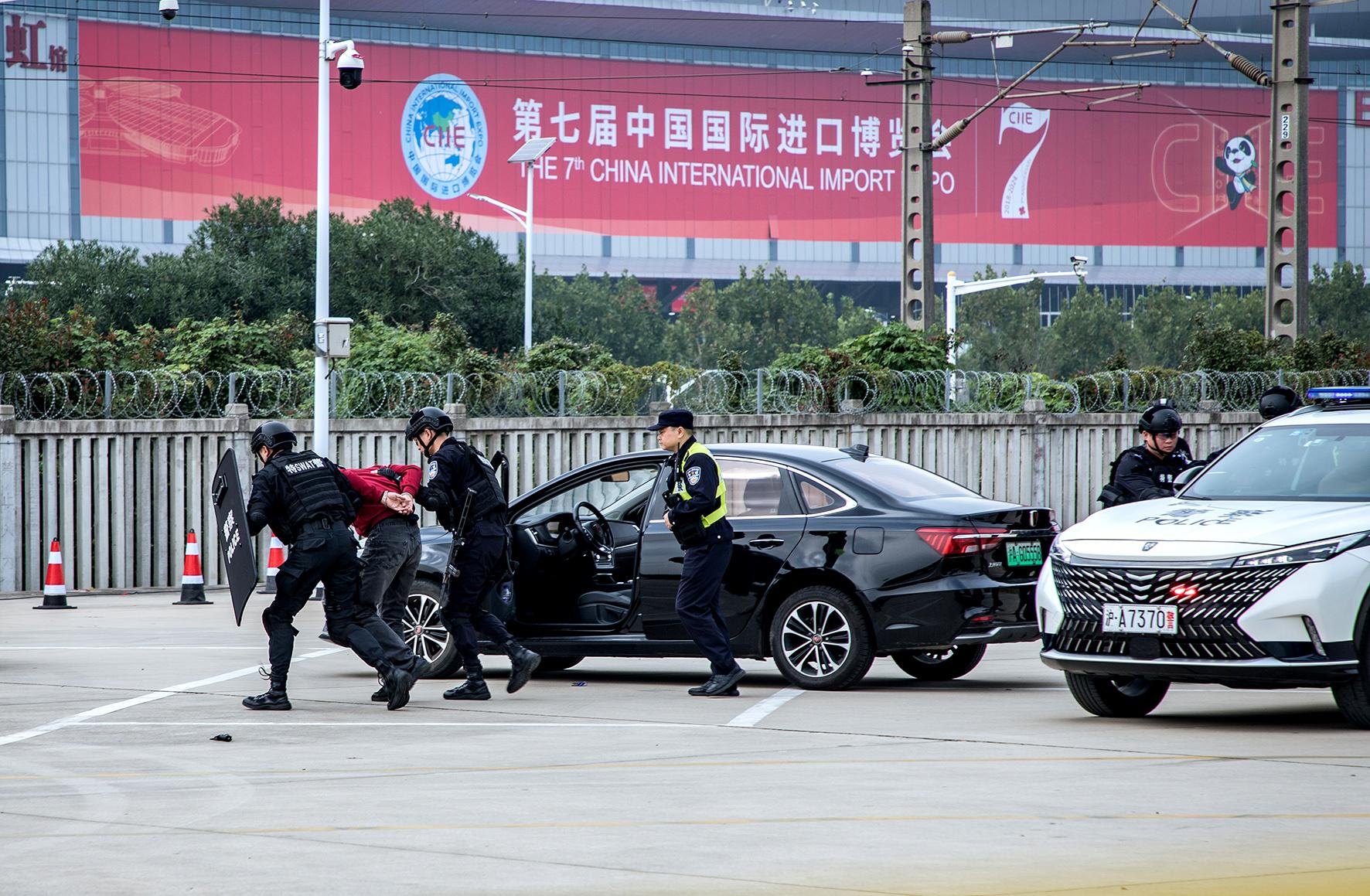 為迎接第七屆中國國際進(jìn)口博覽會順利召開,10月28日,上海市公安局閔行分局組織開展全警實戰(zhàn)大練兵。