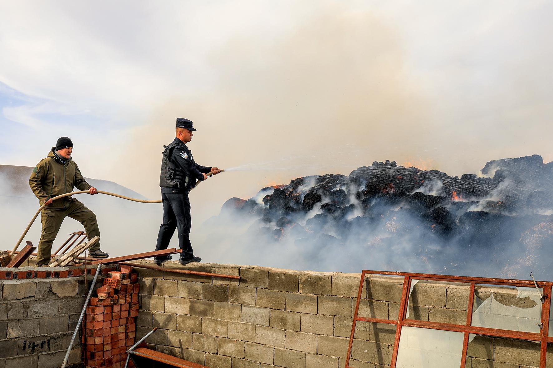 11月5日,新疆出入境邊防檢查總站阿勒泰邊境管理支隊(duì)富蘊(yùn)大隊(duì)吐爾洪邊境派出所轄區(qū)一牧民家中草垛突發(fā)起火,民警緊急出警對(duì)失火農(nóng)戶進(jìn)行滅火救援。