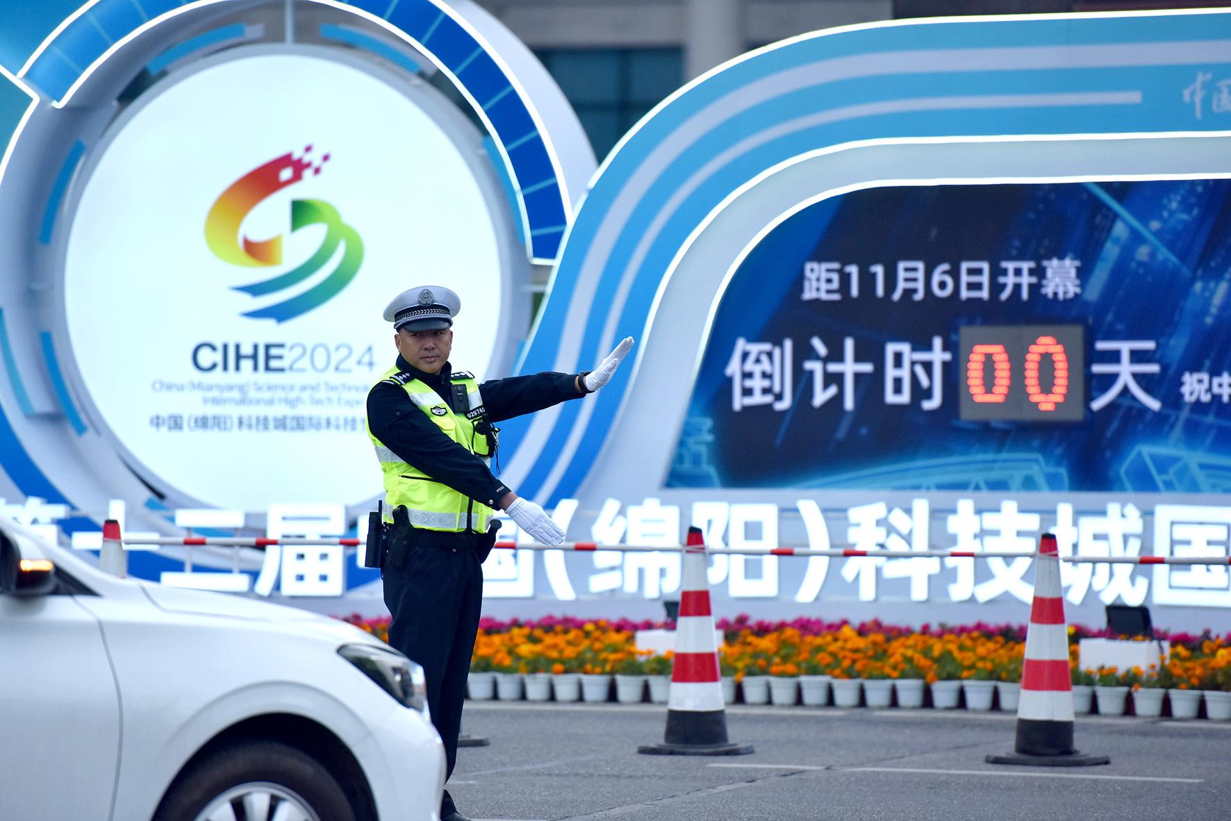 11月6日,第十二屆中國(綿陽)科技城國際科技博覽會(huì)開幕。四川省綿陽市公安局交警支隊(duì)直屬一大隊(duì)科學(xué)制定交通組織措施,全員上路指揮疏導(dǎo),確保道路交通安全暢通。