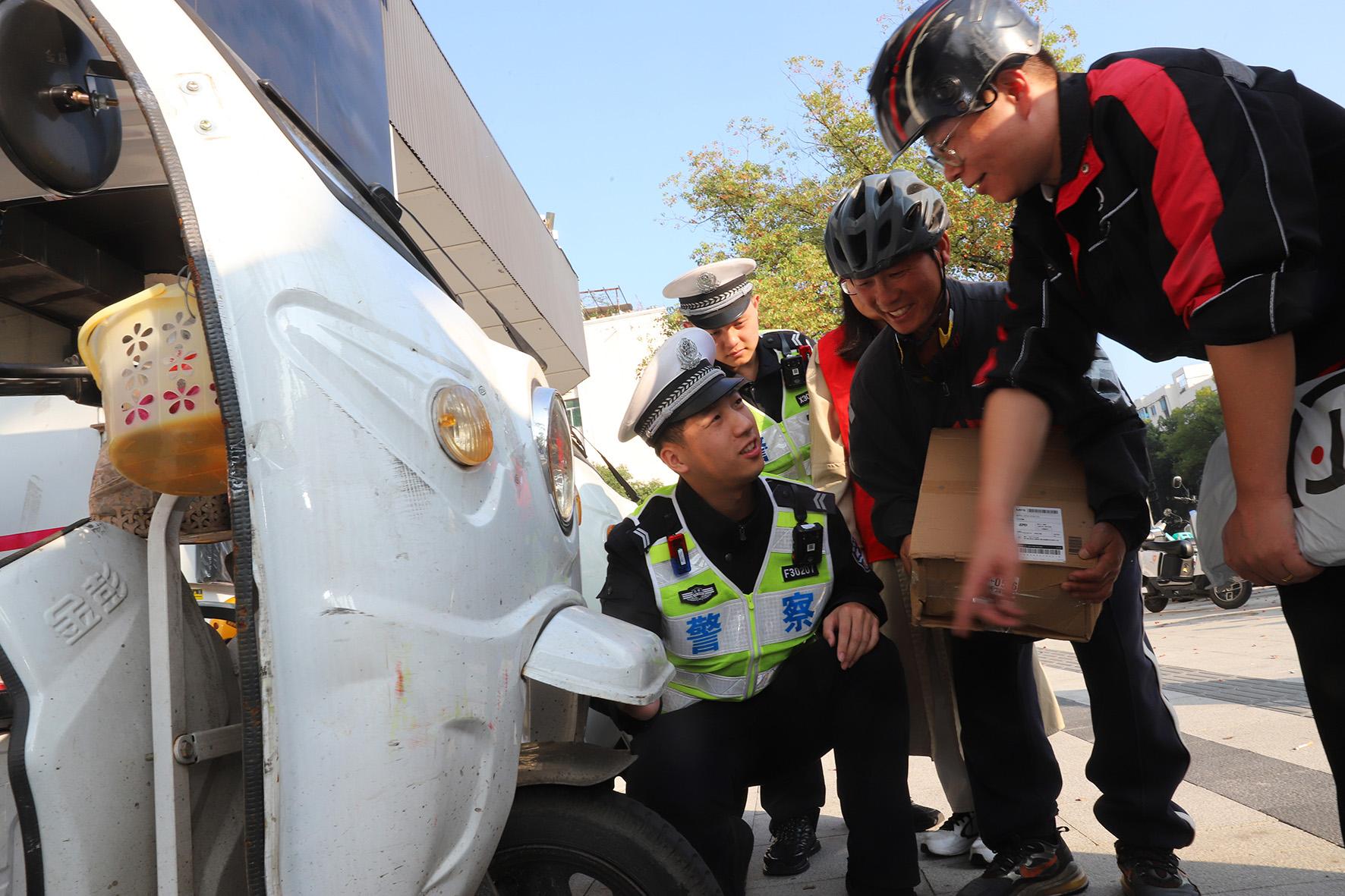 11月12日,浙江省臺(tái)州市路橋區(qū)路北街道平安辦組織黨員干部和交警一起深入各快遞網(wǎng)點(diǎn),向快遞小哥宣傳平安知識(shí),增強(qiáng)他們安全意識(shí)。