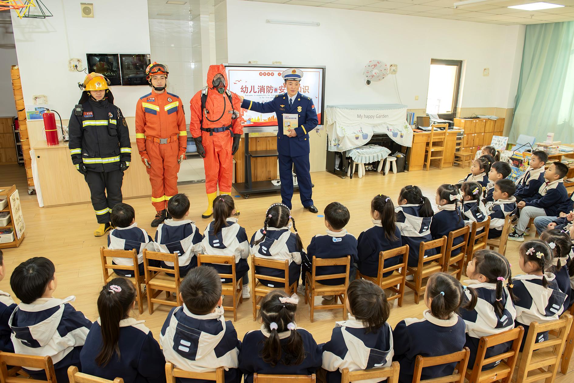11月22日,江蘇省消防救援總隊泰州支隊高新區(qū)消防救援大隊“藍(lán)焰”志愿服務(wù)隊走進(jìn)轄區(qū)幼兒園開展消防安全知識宣傳教育活動。