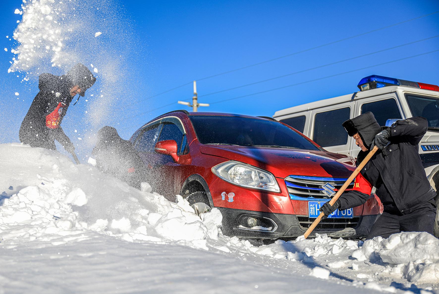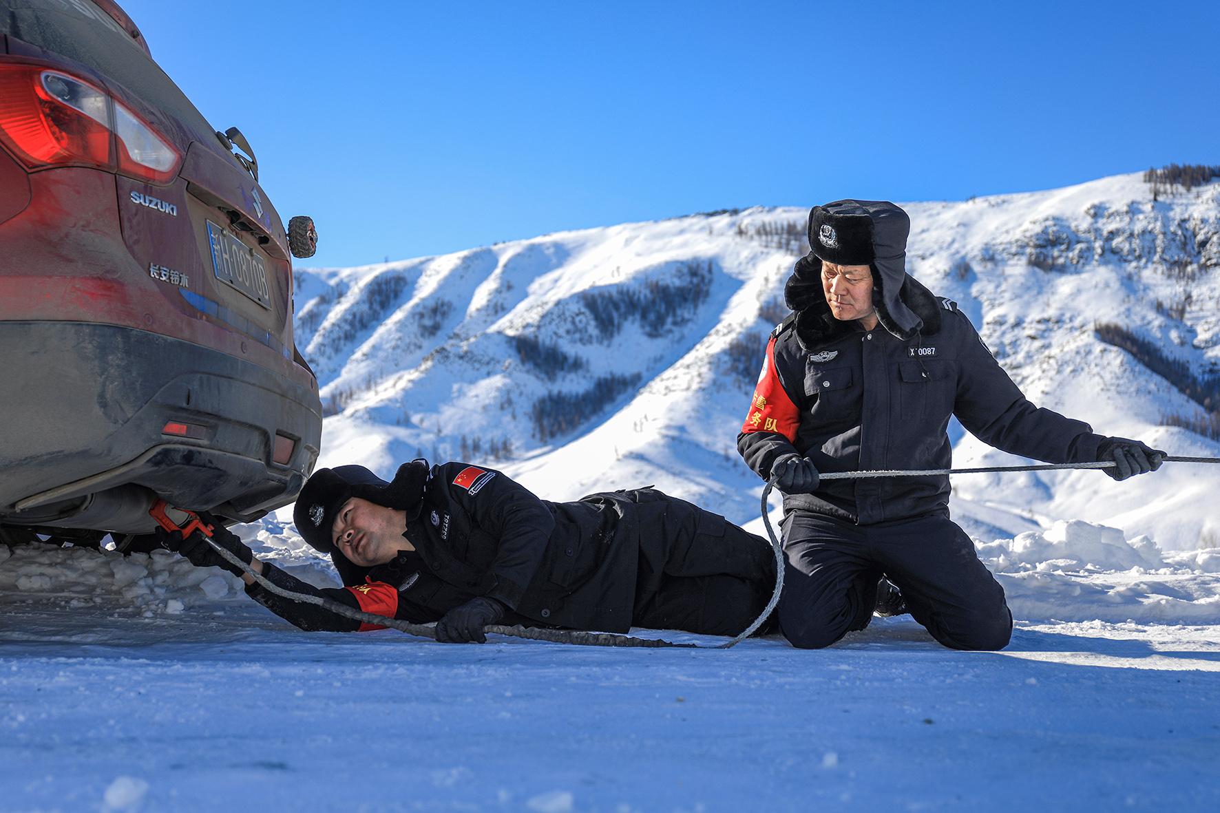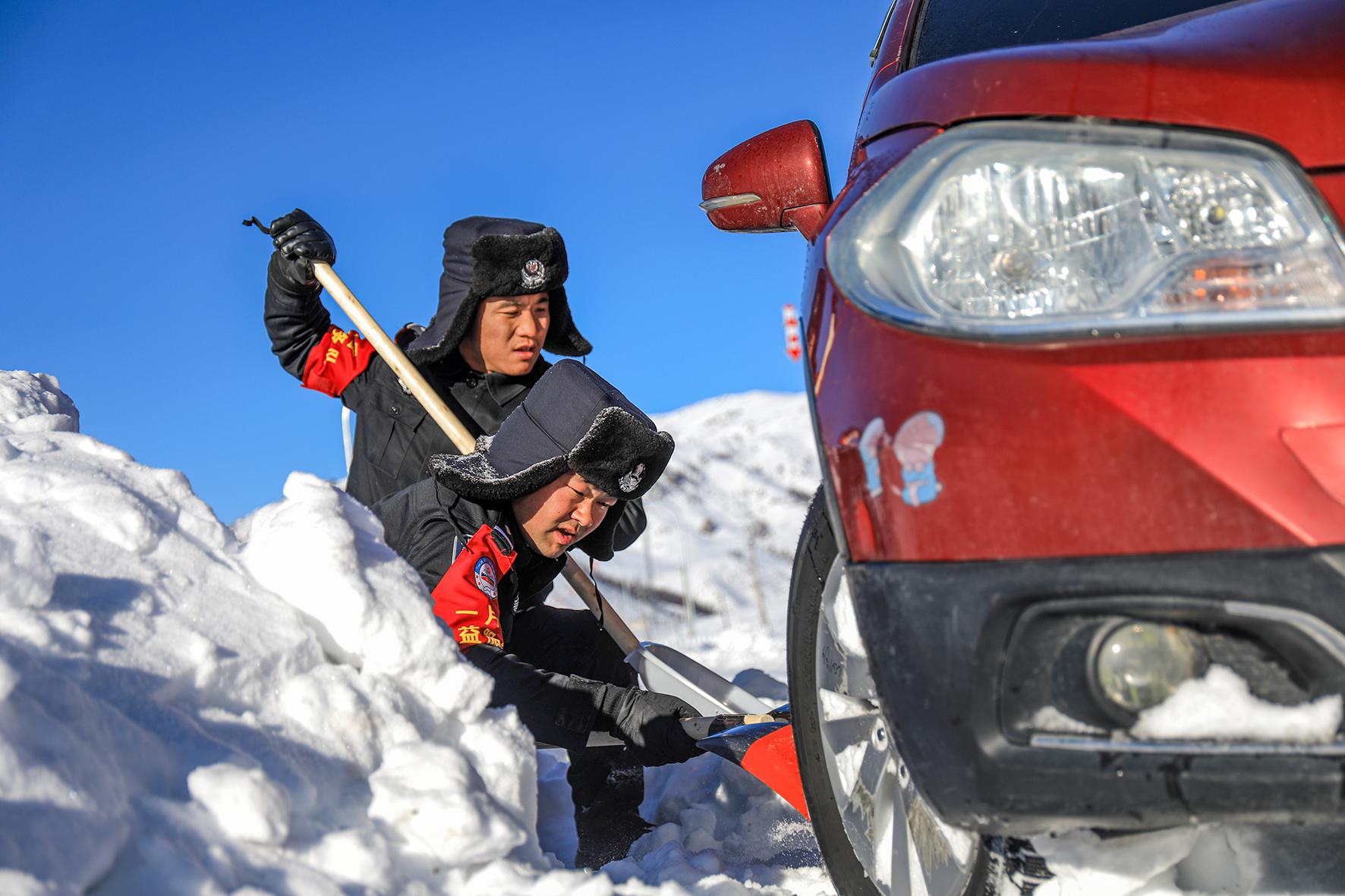 12月5日12時許,新疆出入境邊防檢查總站阿勒泰邊境管理支隊庫衛(wèi)邊境派出所接到群眾求助稱車輛因積雪滑下路基被困。接到求助警情后,巡邏警力第一時間趕赴現(xiàn)場,通過清挖積雪和警車牽引的方式,成功將被困人員和車輛救出。