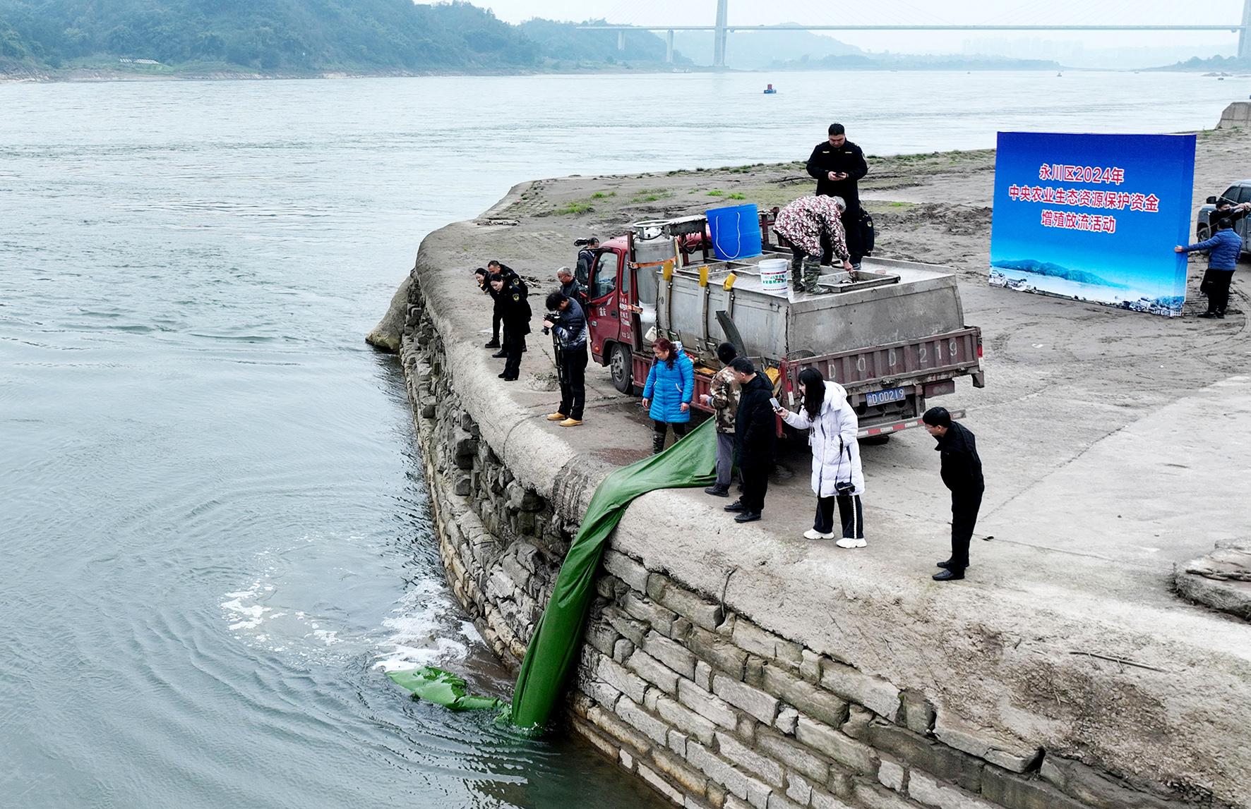 12月9日,重慶市永川區(qū)農業(yè)農村委在長江上游珍稀特有魚類國家級自然保護區(qū)永川松溉段開展“永川區(qū)2024年中央農業(yè)生態(tài)資源保護資金增殖放流活動”,39.45萬尾胭脂魚、巖原鯉、厚頜魴等7種魚類魚苗被投放到長江之中。