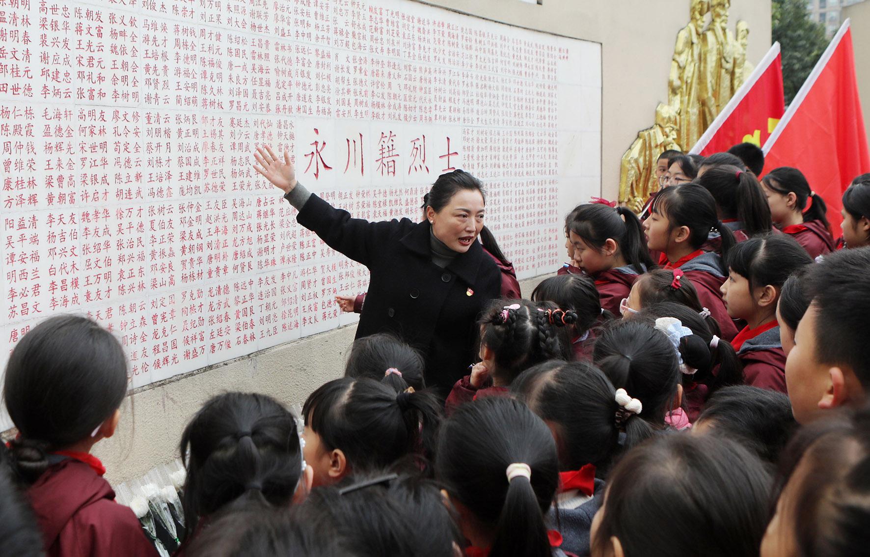 12月12日,重慶市永川區(qū)紅旗小學(xué)在桂山公園革命烈士紀(jì)念碑前,開展“銘記歷史 勿忘國恥 振興中華”主題思政教育活動。