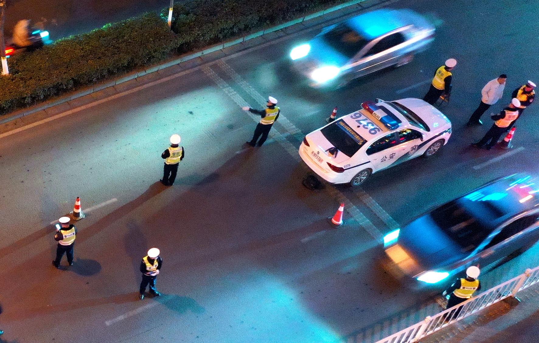 12月24日夜,安徽省舒城縣公安局交管大隊組織警力在縣城主干道集中開展夜查行動。