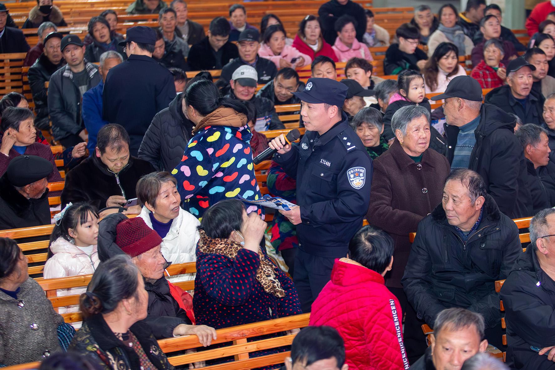 12月25日夜,浙江省臺(tái)州市公安局黃巖分局城西派出所民警來(lái)到羅家匯村社戲現(xiàn)場(chǎng),向村民開(kāi)展防范電信網(wǎng)絡(luò)詐騙知識(shí)宣傳。