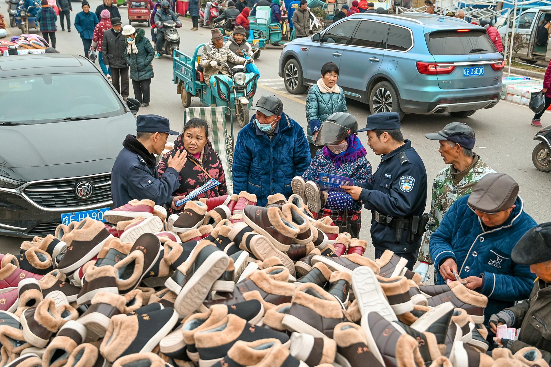 12月25日,安徽省馬鞍山市和縣公安局民警利用群眾“趕大集”的機會開展法治宣傳。