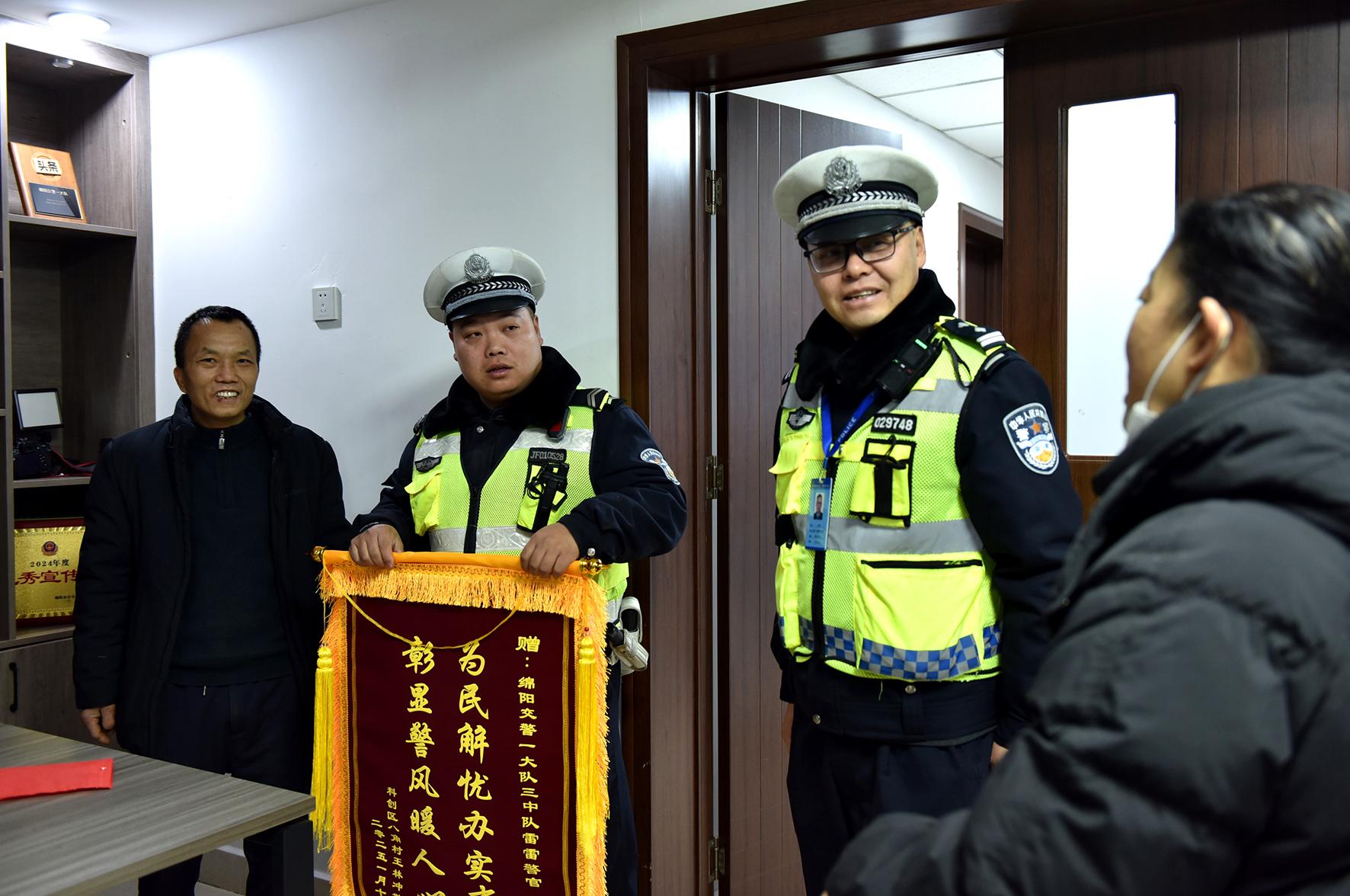 1月10日,第五個(gè)中國(guó)人民警察節(jié)。一對(duì)中年夫婦手拿錦旗走進(jìn)了四川省綿陽(yáng)市公安局交警支隊(duì)直屬一大隊(duì),感謝民輔警巡邏時(shí),將80多歲、迷路的父親安全送回家中。