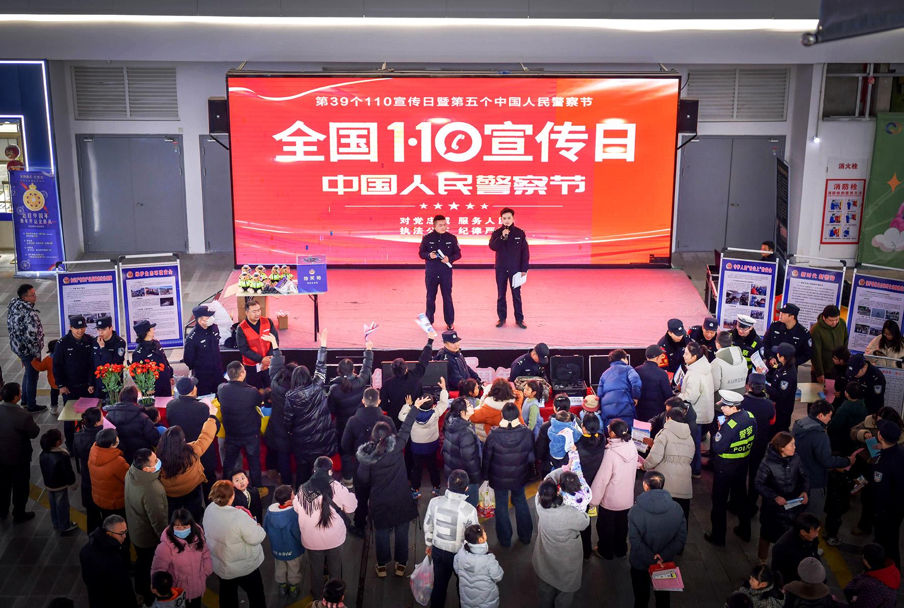 1月9日晚,安徽省涇縣公安局民警輔警來(lái)到繽紛環(huán)球城廣場(chǎng)開展以“110宣傳日”為主題的集中宣傳活動(dòng)。