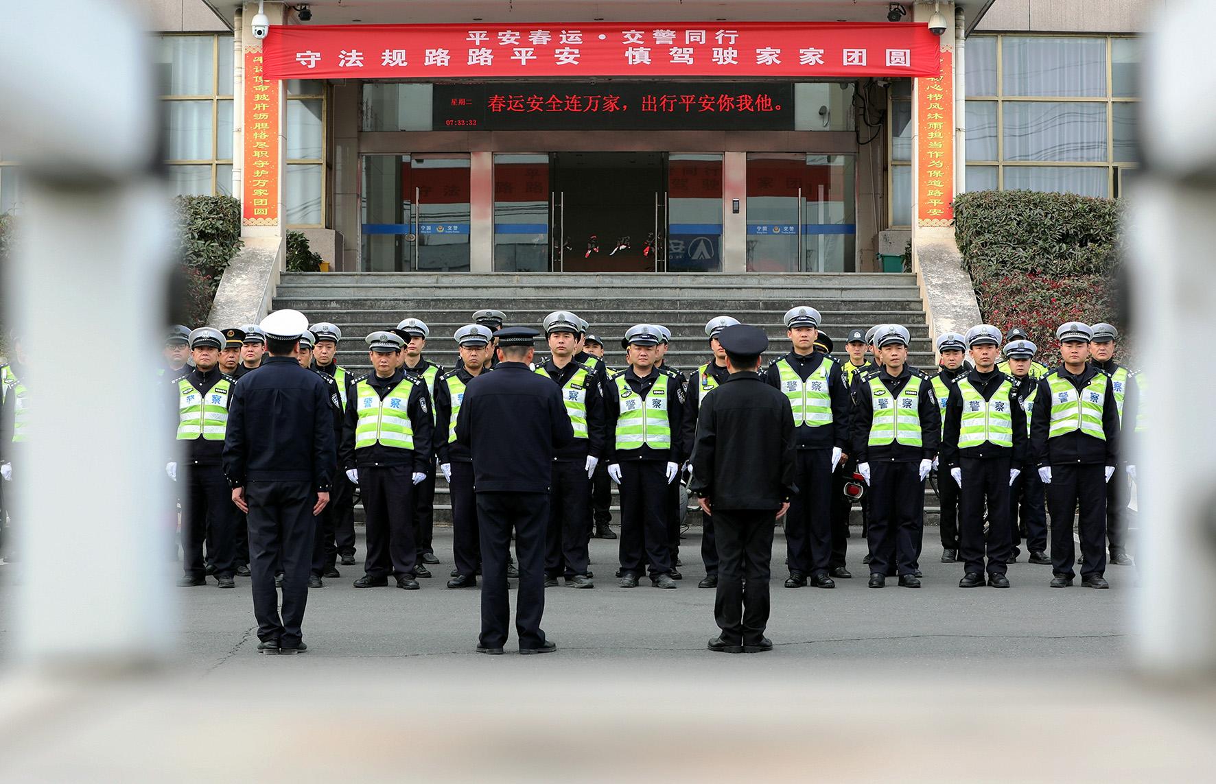 1月14日,一年一度春運正式拉開序幕。安徽省寧國市公安局會同交通運輸部門舉行春運安保啟動儀式。