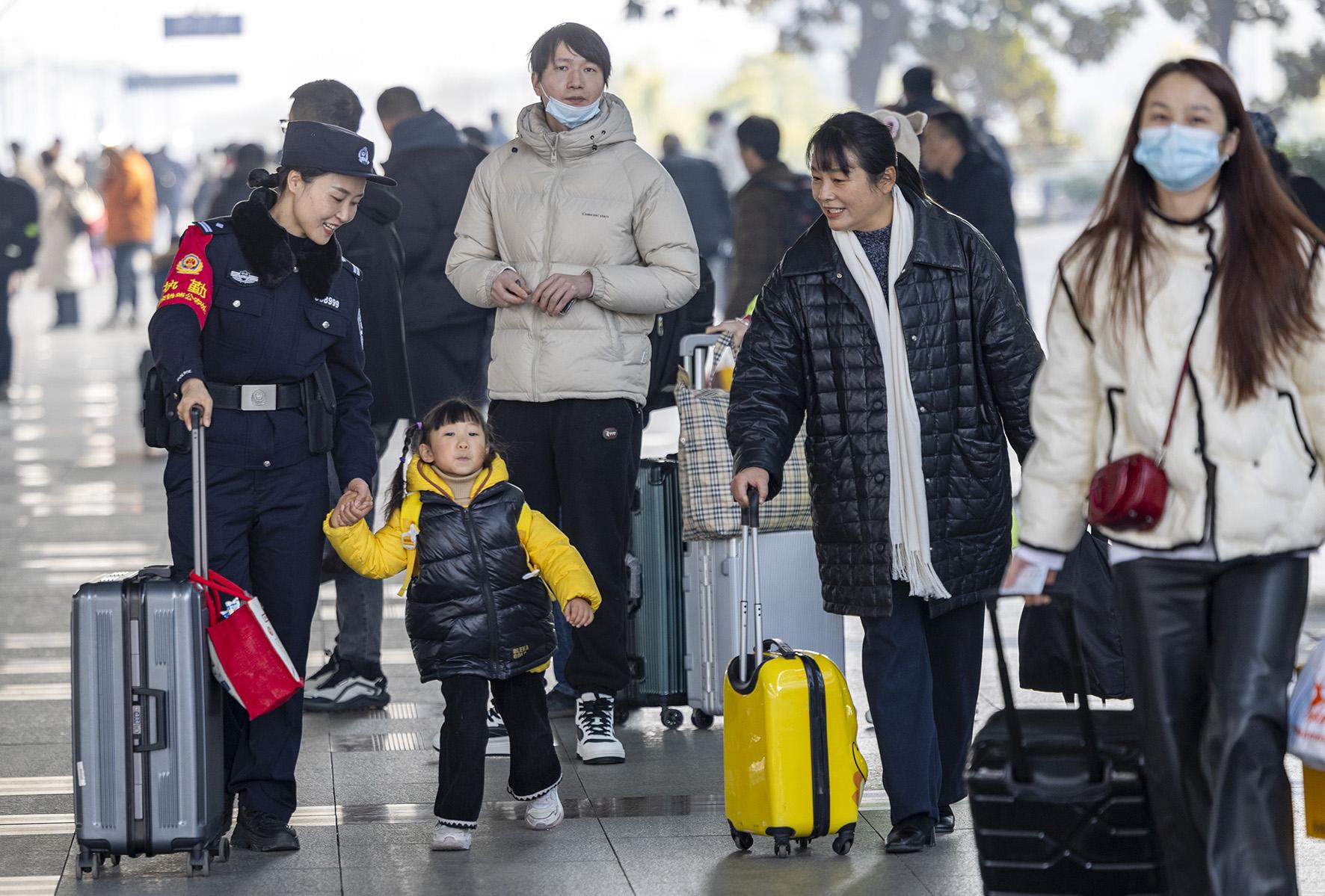 1月14日,春運首日,南京鐵路公安處泰州站派出所強化站區(qū)和線路治安管控,全力以赴護航旅客安全出行。