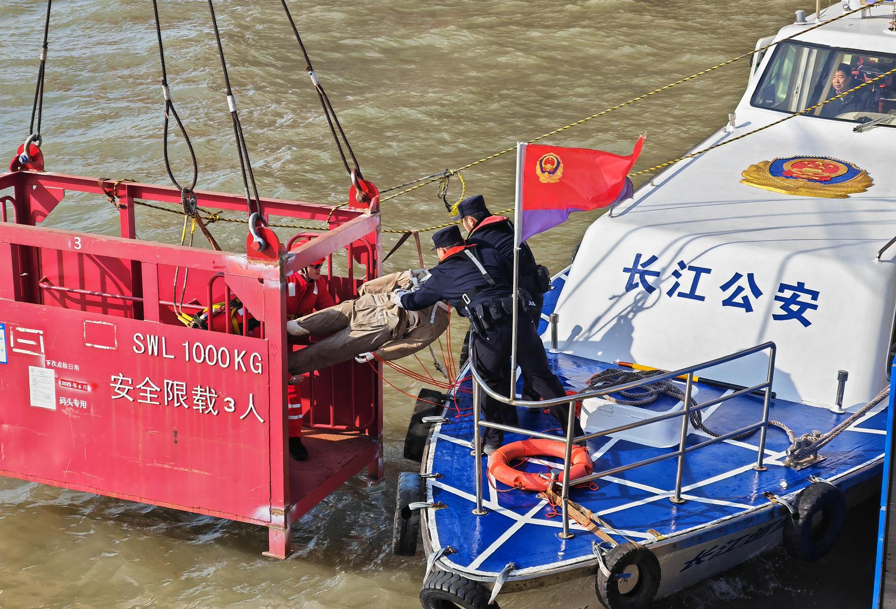 圖為民警利用公安艇轉(zhuǎn)移救治落水人員。
