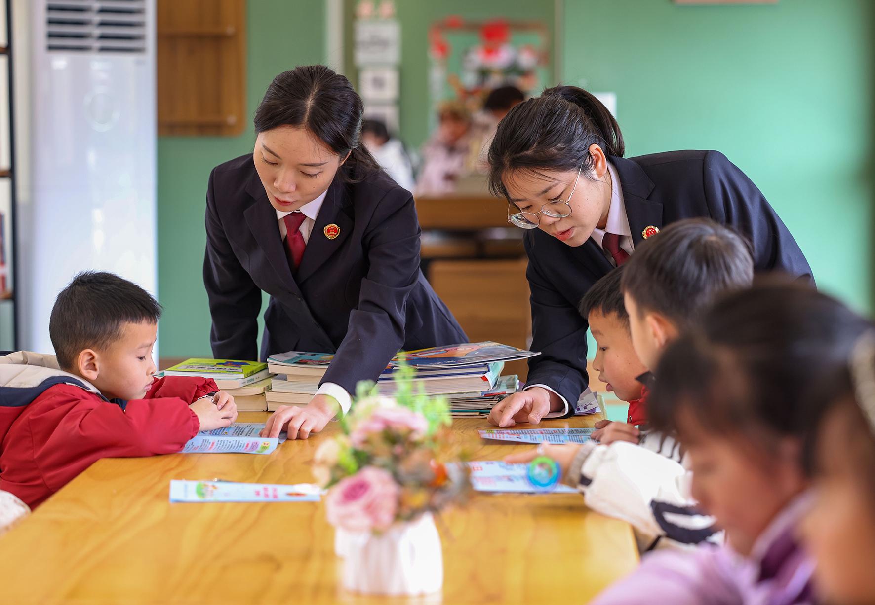 圖為檢察干警在紫氣山社區(qū)書屋給小朋友宣傳未成年人保護(hù)法律知識。