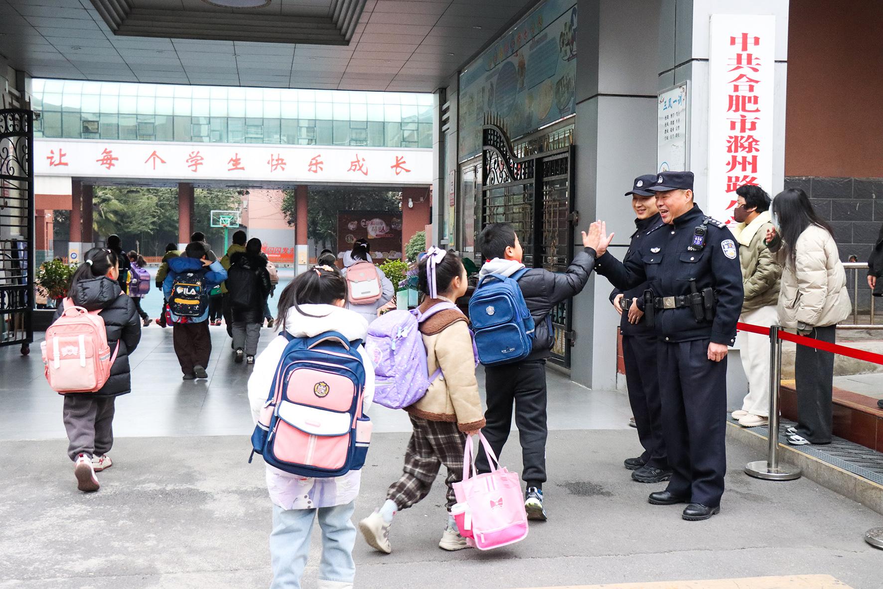 2月14日,安徽省馬鞍山市和縣公安局“護(hù)學(xué)崗”民警正在實(shí)驗(yàn)小學(xué)護(hù)送學(xué)生放學(xué)。