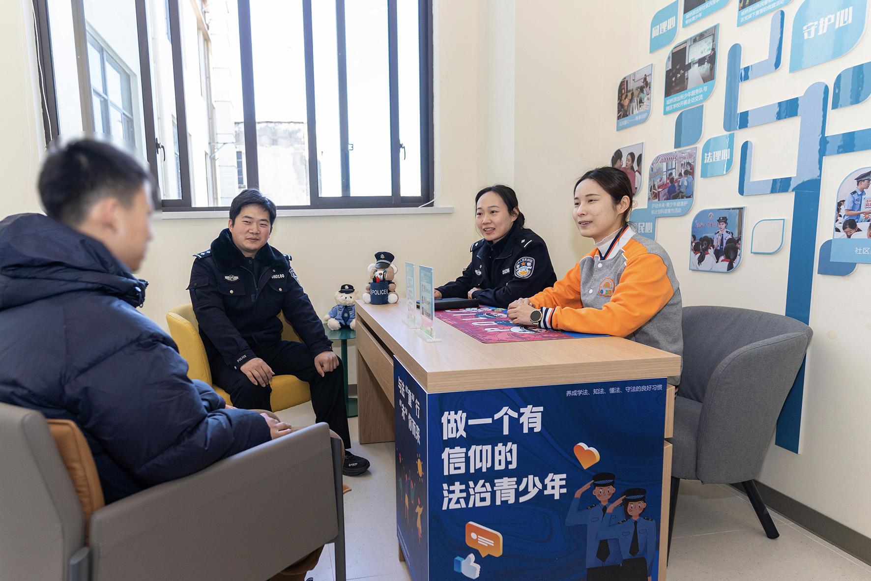 圖為3月9日,民警聯(lián)合青少年社工在社區(qū)少年服務(wù)隊(duì)工作室為未成年人提供心理輔導(dǎo)。