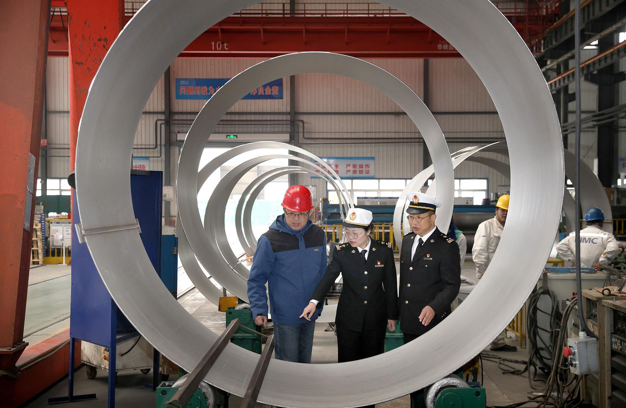 3月10日,南通海關(guān)關(guān)員在江蘇省南通市崇川區(qū)一家企業(yè)實(shí)地調(diào)研,保障出口產(chǎn)品高效出海。南通海關(guān)聚焦企業(yè)關(guān)心關(guān)注,不斷優(yōu)化服務(wù),在提升營(yíng)商環(huán)境中全力展現(xiàn)“海關(guān)作為”。