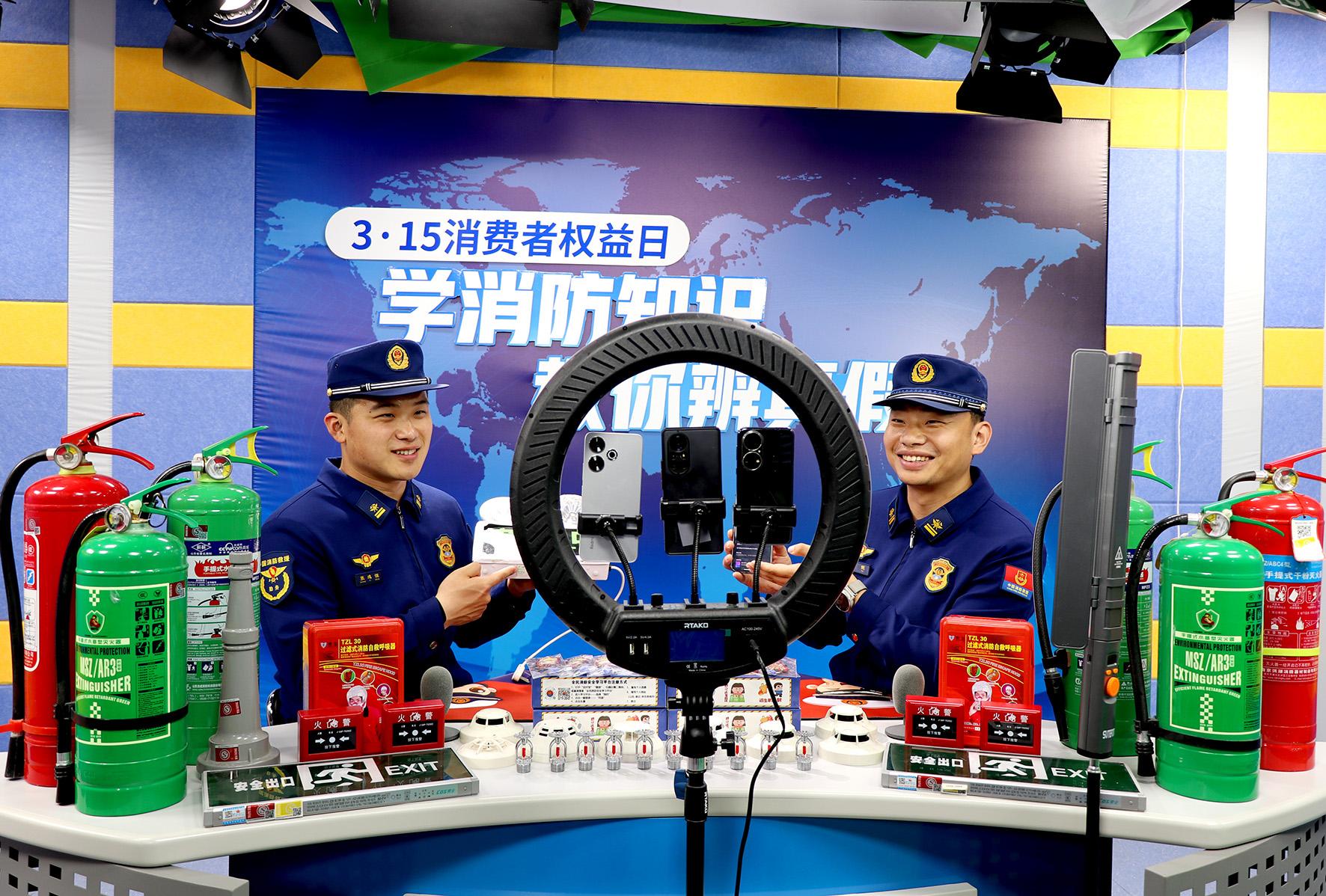 在“3·15”國際消費者權(quán)益日來臨之際,3月12日,山東省棗莊市高新區(qū)消防救援大隊消防員走進直播間,通過知識講解、案例分析、實物演示、真假對比、性能測試、線上互動等方式,為網(wǎng)友普及消防產(chǎn)品知識。